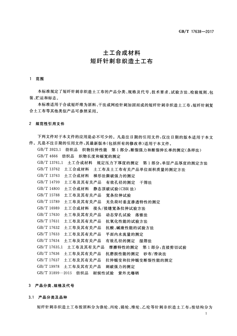 ICS59.080.70W59GP中华人民共和国国家标准GB_T17638-2017代替GB_T17638-1998土工合成材料短纤针刺非织造土工布348072@abc8天前发布关注私信0.52MB7页033ICS59.080.70W59GP中华人民共和国国家标准GB_T17638-2017代替GB_T17638-1998土工合成材料短纤针刺非织造土工布此内容为付费资源,请付费后查看¥19¥23黄金会员免费钻石会员免费立即购买您当前未登录!建议登陆后购买,可保存购买订单付费资源 第1页 / 共7页 第2页 / 共7页 第3页 / 共7页 试读已结束,还剩4页,您可下载完整版后进行离线阅读 THE END标准规范餐饮美食 文本预览 1ICS59.080.70W59中华人民共和国国家标准GB/T17638-2017代替GB/T17638-1998土工合成材料短纤针刺非织造土工布Geosynthetics -Synthetic staple fibers needlepunched nonwoven geotextiles2017-05-12发布2017-12-01实施中华人民共和国国家质量监督检验检疫总局中国国家标准化管理委员会发布 查看更多 收起部分 喜欢就支持一下吧收藏