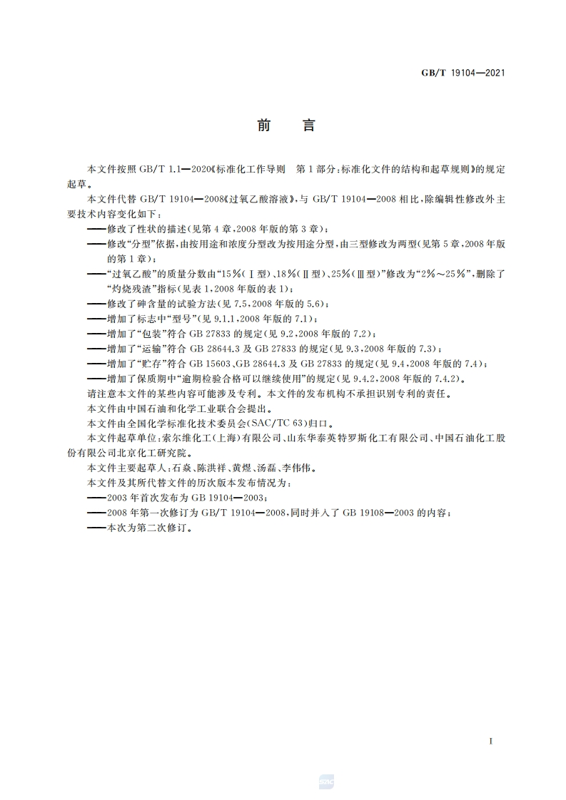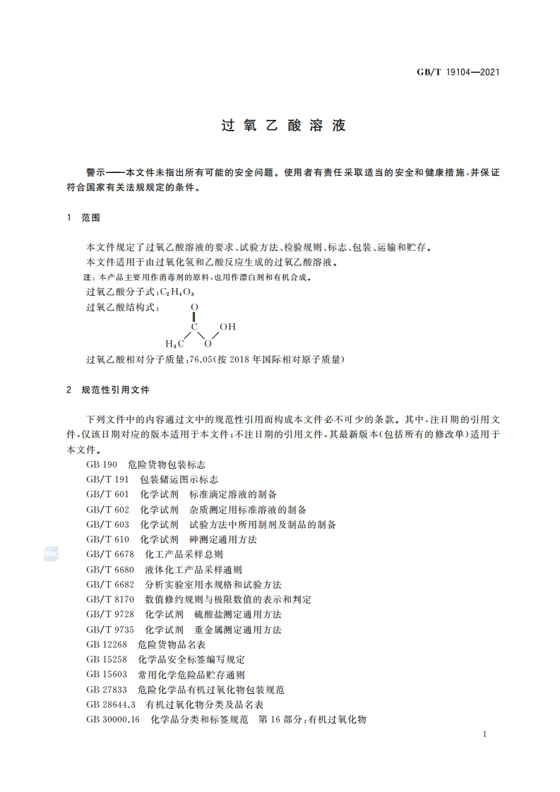 ICS71.080.40CCSG17G2中华人民共和国国家标准GB_T19104-2021代替GB_T19104-2008过氧乙酸溶液Peraceticacidsolution348072@abc9天前发布关注私信0.54MB8页044ICS71.080.40CCSG17G2中华人民共和国国家标准GB_T19104-2021代替GB_T19104-2008过氧乙酸溶液Peraceticacidsolution此内容为付费资源,请付费后查看¥19¥23黄金会员免费钻石会员免费立即购买您当前未登录!建议登陆后购买,可保存购买订单付费资源 第1页 / 共8页 第2页 / 共8页 第3页 / 共8页 试读已结束,还剩5页,您可下载完整版后进行离线阅读 THE END标准规范餐饮美食 文本预览 1Cs71.080.40CCS G 17B中华人民共和国国家标准GB/T19104一2021代替GB/T19104一2008过氧乙酸溶液Peracetic acid solution2021-08-20发布2022-03-01实施国家市场监督管理总局发布国家标准化管理委员会 查看更多 收起部分 喜欢就支持一下吧收藏