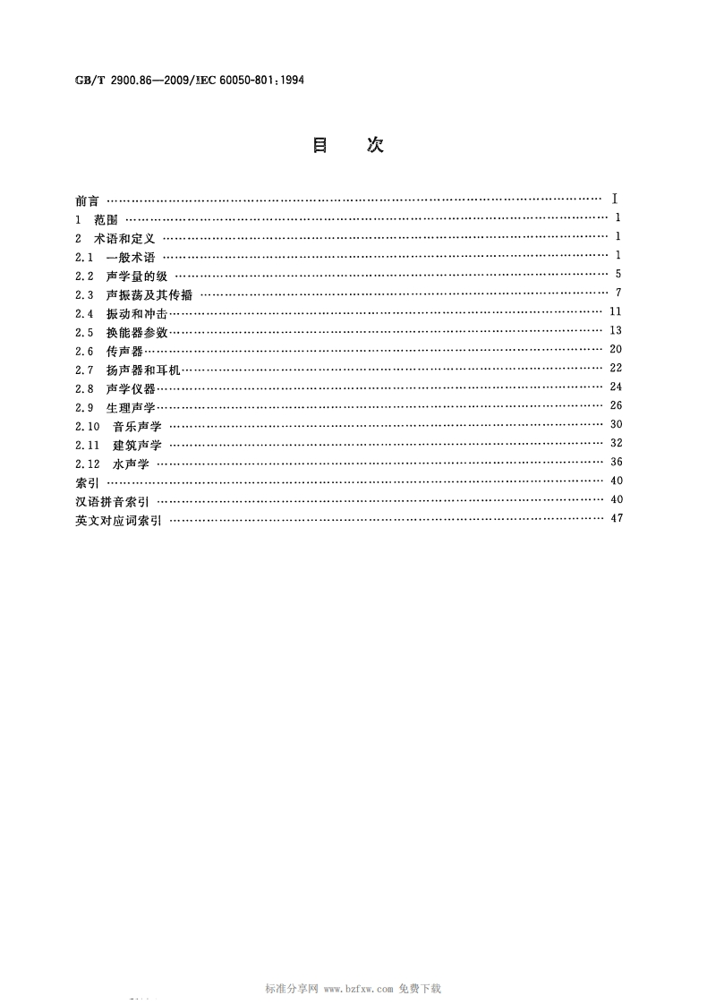 1CS01.040.17K04中华人民共和国国家标准GB/T2900.86-2009/IEC60050-801:1994电工术语声学和电声学Electrotechnical terminology-Acoustics and electroacoustics(IEC 60050-801:1994,International Electrotechnical Vocabulary-Part 801:Acoustics and electroacoustics,IDT)2009-03-13发布2009-11-01实施中华人民共和国国家质量监督检验检疫总局、效码伪中国国家标准化管理委员会发布