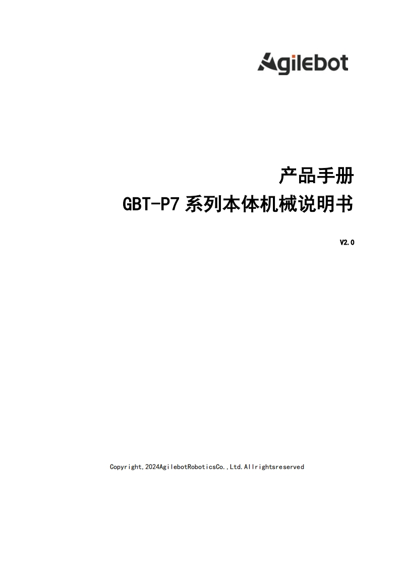 GBT-P7系列本体机械说明书_V2.0348072@abc4个月前发布关注私信2.91MB63页023GBT-P7系列本体机械说明书_V2.0此内容为付费资源,请付费后查看¥13¥25黄金会员免费钻石会员免费立即购买您当前未登录!建议登陆后购买,可保存购买订单付费资源 第1页 / 共63页 第2页 / 共63页 试读已结束,还剩61页,您可下载完整版后进行离线阅读 THE END标准规范 文本预览 gil∈bot产品手册GBT-P7系列本体机械说明书 查看更多 收起部分 喜欢就支持一下吧收藏