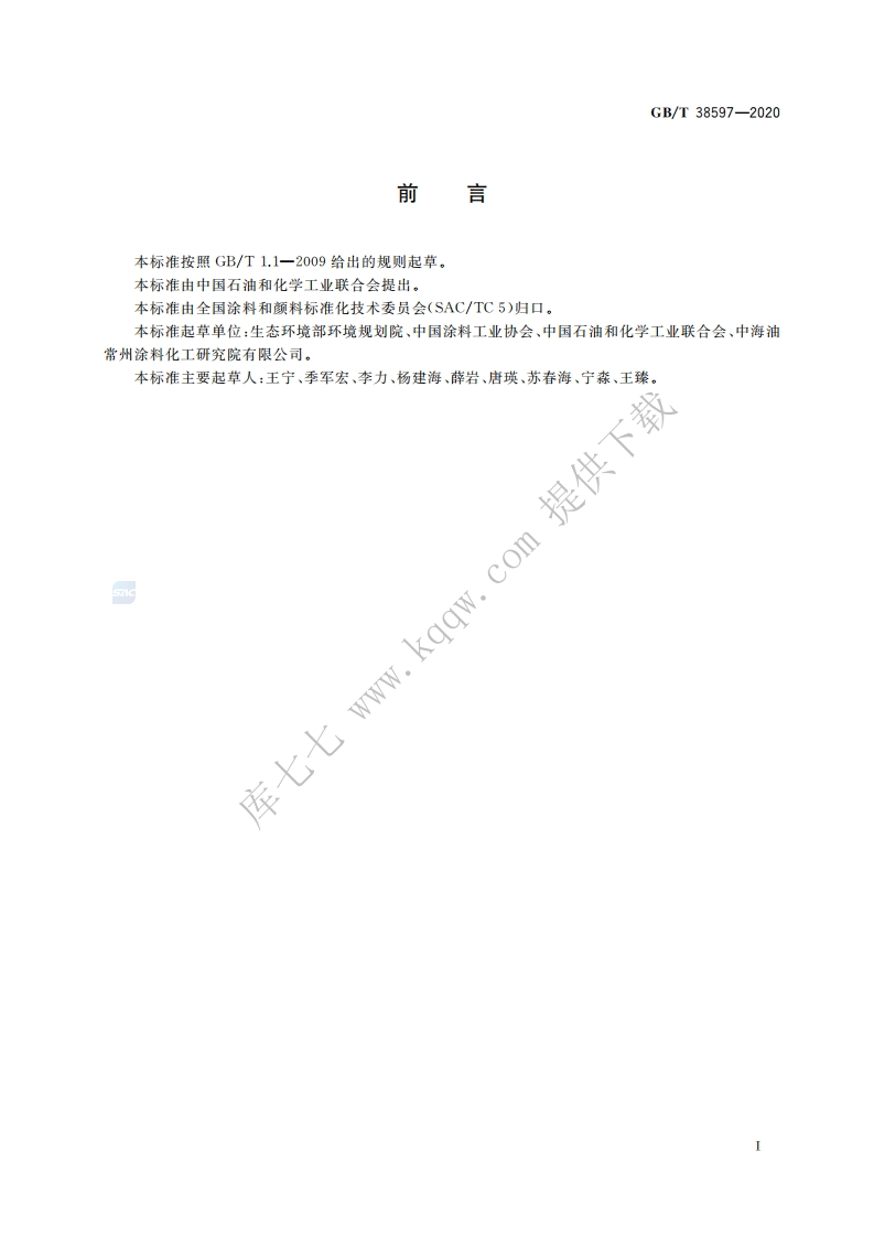 ICS87.040G51GB中华人民共和国国家标准GB_T38597-2020低挥发性有机化合物含量涂料产品技术要求348072@abc9天前发布关注私信0.94MB15页037ICS87.040G51GB中华人民共和国国家标准GB_T38597-2020低挥发性有机化合物含量涂料产品技术要求此内容为付费资源,请付费后查看¥19¥23黄金会员免费钻石会员免费立即购买您当前未登录!建议登陆后购买,可保存购买订单付费资源 第1页 / 共15页 第2页 / 共15页 第3页 / 共15页 试读已结束,还剩12页,您可下载完整版后进行离线阅读 THE END标准规范餐饮美食 文本预览 ICS87.040G51中华人民共和国国家标准GB/T38597-2020低挥发性有机化合物含量涂料产品技术要求Technical requirement for low-volatile-organic-compound-content coatings product2020-03-31发布2021-02-01实施国家市场监督管理总局发布国家标准化管理委员会 查看更多 收起部分 喜欢就支持一下吧收藏