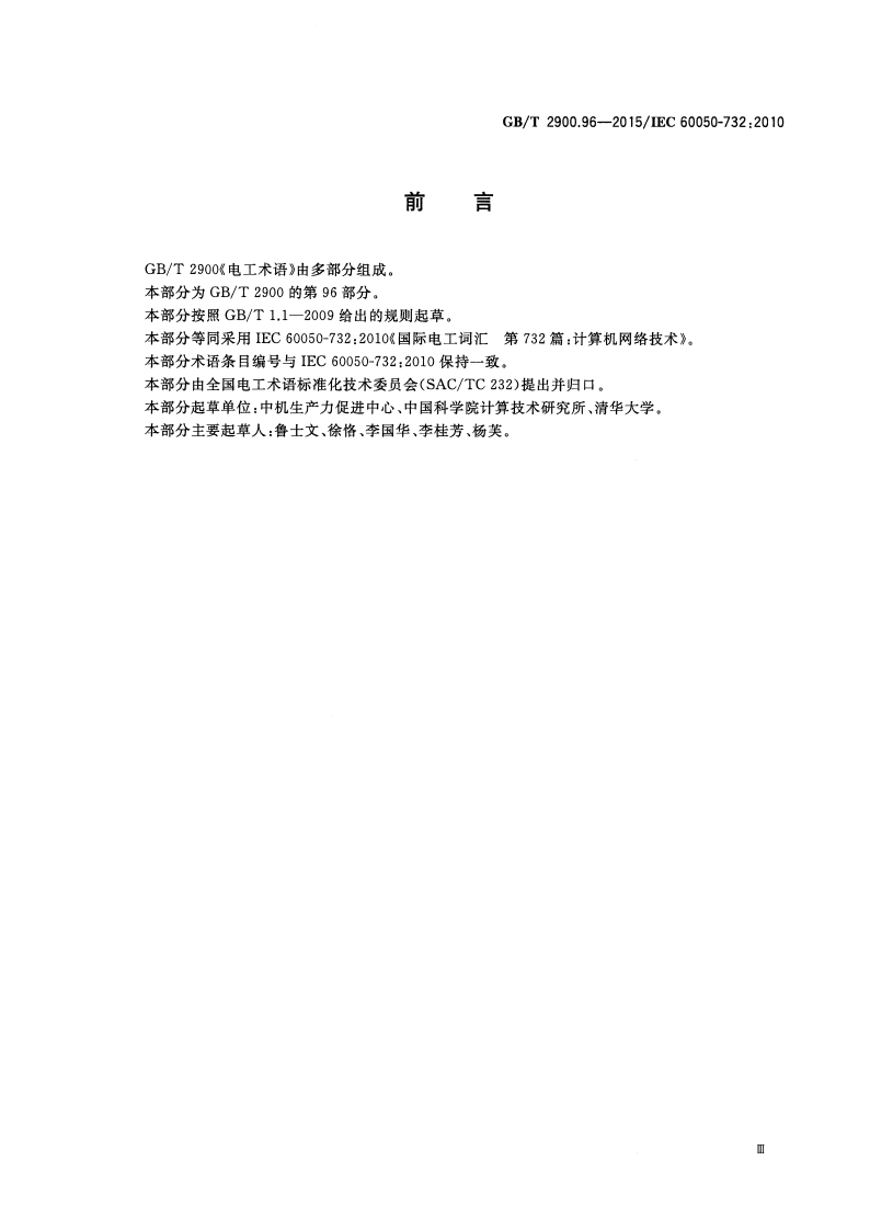 ICS01.040.35M07中华人民共和国国家标准GB/T2900.96-2015/IEC60050-732:2010电工术语计算机网络技术Electrotechnical terminology-Computer network technology(IEC 60050-732:2010 International electrotechnical vocabulary-Part 732:Computer network technology,IDT)2015-09-11发布2016-04-01实施中华人民共和国国家质量监督检验检疫总局中国国家标准化管理委员会发布
