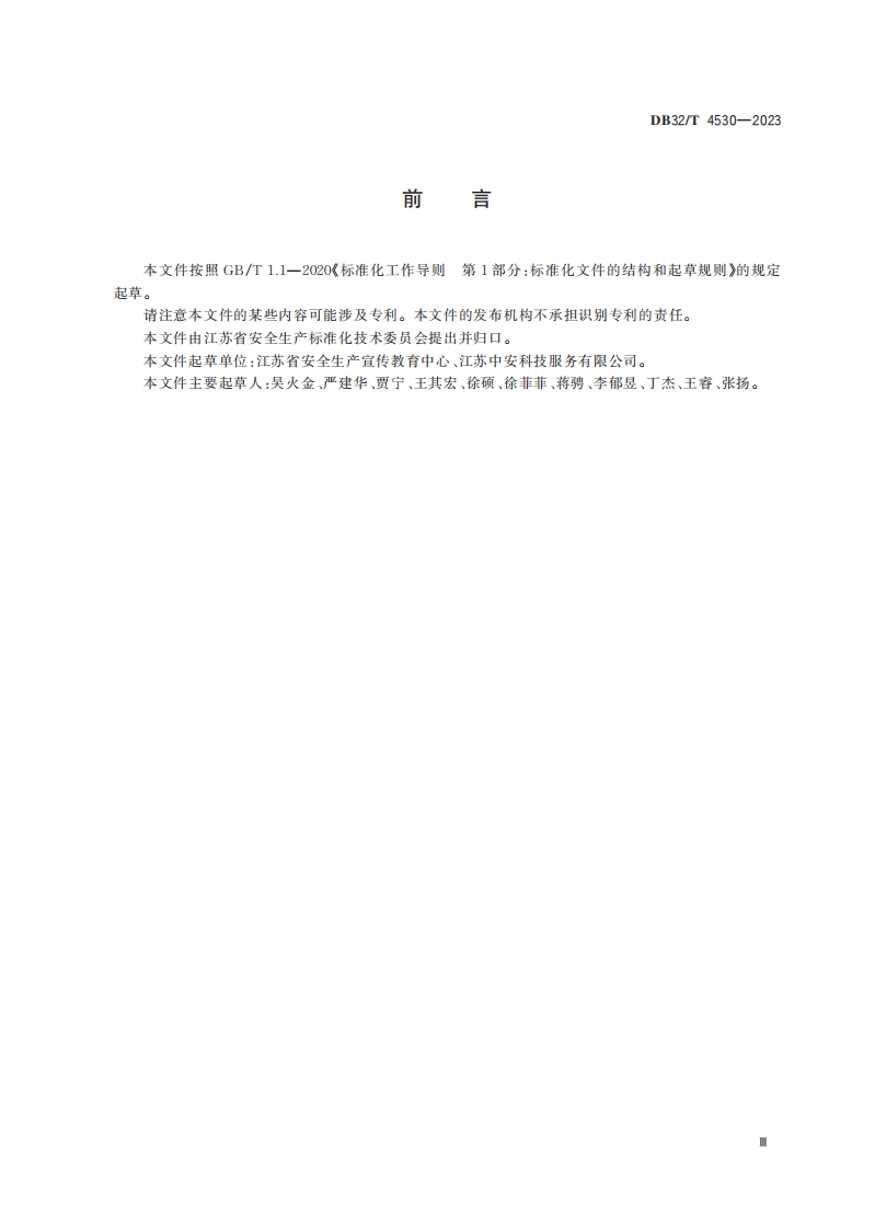 ICS03.100.50CCSC77DB32江苏省地方标准DB32_T4530-2023生产经营单位安全生产培训规范SpecificationfortheworksafetytrainingofproductionandDusinessunits348072@abc7天前发布关注私信0.55MB19页050ICS03.100.50CCSC77DB32江苏省地方标准DB32_T4530-2023生产经营单位安全生产培训规范SpecificationfortheworksafetytrainingofproductionandDusinessunits此内容为付费资源,请付费后查看¥19¥23黄金会员免费钻石会员免费立即购买您当前未登录!建议登陆后购买,可保存购买订单付费资源 第1页 / 共19页 第2页 / 共19页 第3页 / 共19页 试读已结束,还剩16页,您可下载完整版后进行离线阅读 THE END标准规范餐饮美食 文本预览 ICS03.100.50CCS C 77DB32江苏省地方标准DB32/T4530-2023生产经营单位安全生产培训规范Specification for the work safety training of production andbusiness units2023-07-25发布2023-08-25实施江苏省市场监督管理局发布中国标准出版社出版 查看更多 收起部分 喜欢就支持一下吧收藏