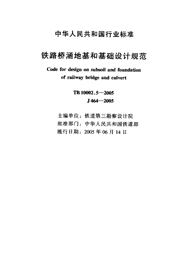 J464–2005铁路桥涵地基和基础设计规范Codefordesignonsubsoilandfoundationofrailwaybridgeandculvert348072@abc5天前发布关注私信5.50MB264页047J464–2005铁路桥涵地基和基础设计规范Codefordesignonsubsoilandfoundationofrailwaybridgeandculvert此内容为付费资源,请付费后查看¥19¥23黄金会员免费钻石会员免费立即购买您当前未登录!建议登陆后购买,可保存购买订单付费资源 第1页 / 共264页 第2页 / 共264页 第3页 / 共264页 试读已结束,还剩261页,您可下载完整版后进行离线阅读 THE END标准规范餐饮美食 文本预览 UDCTB中华人民共和国行业标准TB10002.5-2005PJ464-2005铁路桥涵地基和基础设计规范Code for design on subsoil and foundationof railway bridge and culvert2005-06-14发布2005-06-14实施中丝人民址知国铁首部发本 查看更多 收起部分 喜欢就支持一下吧收藏