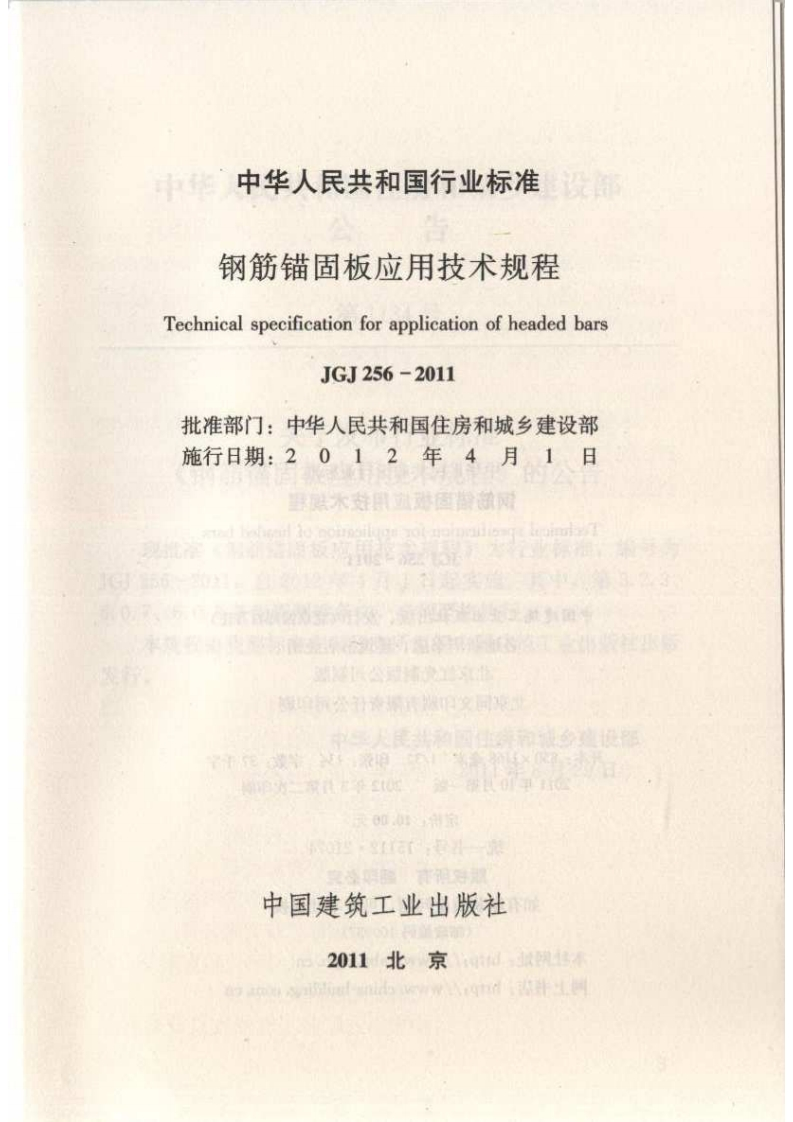 JGJ256-201备案号J1230-201钢筋锚固板应用技术规程Technicalspecificationforapplicationofheadedbars扫码关注,回复_规范!最新标准规范,请关注微信公众号回复_规范,即可下载500本领取规范!煞信扫二维码关注348072@abc5天前发布关注私信4.21MB46页034JGJ256-201备案号J1230-201钢筋锚固板应用技术规程Technicalspecificationforapplicationofheadedbars扫码关注,回复_规范!最新标准规范,请关注微信公众号回复_规范,即可下载500本领取规范!煞信扫二维码关注此内容为付费资源,请付费后查看¥19¥23黄金会员免费钻石会员免费立即购买您当前未登录!建议登陆后购买,可保存购买订单付费资源 第1页 / 共46页 第2页 / 共46页 第3页 / 共46页 试读已结束,还剩43页,您可下载完整版后进行离线阅读 THE END标准规范餐饮美食 文本预览 UDC中华人民共和国行业标准JJGJ256-2011P备案号J1230-2011钢筋锚固板应用技术规程Technical specification for application of headed bars扫码关注,回复”规范”关可回500本规范!同虎南露微信扫二维码关注!2011-08-29发布2012-04-01·实施中华人民共和国住房和城乡建设部发布 查看更多 收起部分 喜欢就支持一下吧收藏