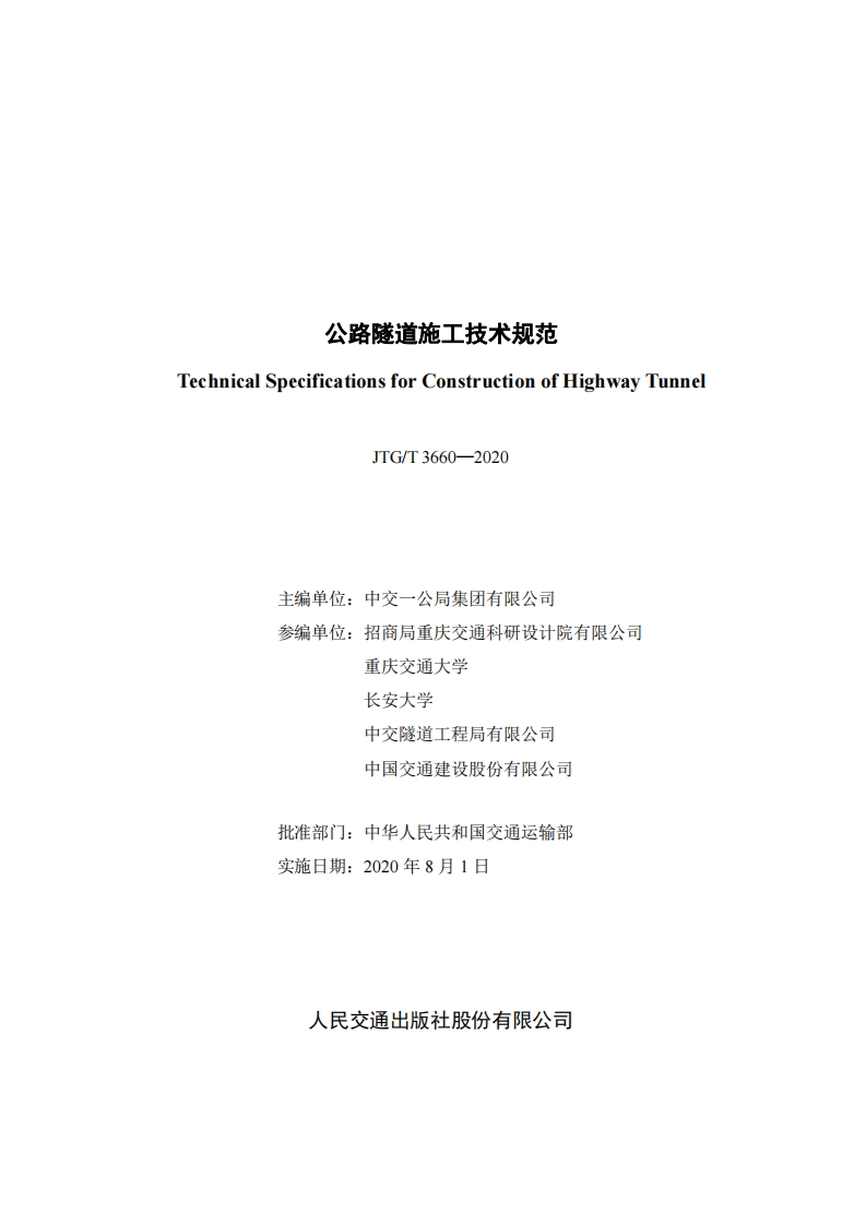 JI中华人民共和国行业推荐性标准JTG_T3660-2020公路隧道施工技术规范TechnicalSpecificationsforConstructionofHighwayTunne348072@abc9天前发布关注私信2.54MB247页039JI中华人民共和国行业推荐性标准JTG_T3660-2020公路隧道施工技术规范TechnicalSpecificationsforConstructionofHighwayTunne此内容为付费资源,请付费后查看¥19¥23黄金会员免费钻石会员免费立即购买您当前未登录!建议登陆后购买,可保存购买订单付费资源 第1页 / 共247页 第2页 / 共247页 第3页 / 共247页 试读已结束,还剩244页,您可下载完整版后进行离线阅读 THE END标准规范餐饮美食 文本预览 JTG中华人民共和国行业推荐性标准JTG/T3660—2020公路隧道施工技术规范Technical Specifications for Construction of Highway Tunnel2020-4-26发布2020-8-1实施中华人民共和国交通运输部发布 查看更多 收起部分 喜欢就支持一下吧收藏