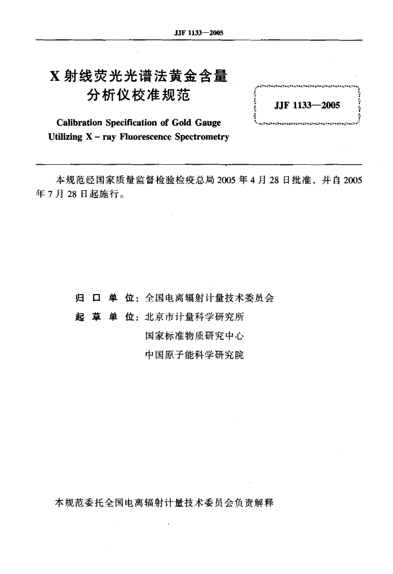 JJF1133–2005射线荧光光谱法黄金含量分析仪校准规范CalibrationSpecificationofGoldGaugeUtilizingX-rayFluorescenceSpectrometry_射线荧光光谱法黄金含量分析仪校准规范CalibrationSpecificationofGoldGaugeUtilizingX-rayFluorescenceSpectrometry348072@abc10天前发布关注私信0.14MB9页033JJF1133–2005射线荧光光谱法黄金含量分析仪校准规范CalibrationSpecificationofGoldGaugeUtilizingX-rayFluorescenceSpectrometry_射线荧光光谱法黄金含量分析仪校准规范CalibrationSpecificationofGoldGaugeUtilizingX-rayFluorescenceSpectrometry此内容为付费资源,请付费后查看¥19¥23黄金会员免费钻石会员免费立即购买您当前未登录!建议登陆后购买,可保存购买订单付费资源 第1页 / 共9页 第2页 / 共9页 第3页 / 共9页 试读已结束,还剩6页,您可下载完整版后进行离线阅读 THE END标准规范餐饮美食 文本预览 可可月中华人民共和国国家计量技术规范JJF1133-2005X射线荧光光谱法黄金含量分析仪校准规范Calibration Specification of Gold GaugeUtilizing X-ray Fluorescence Spectrometry2005-04-28发布2005-07-28实施国家质量监督检验检疫总局发布 查看更多 收起部分 喜欢就支持一下吧收藏