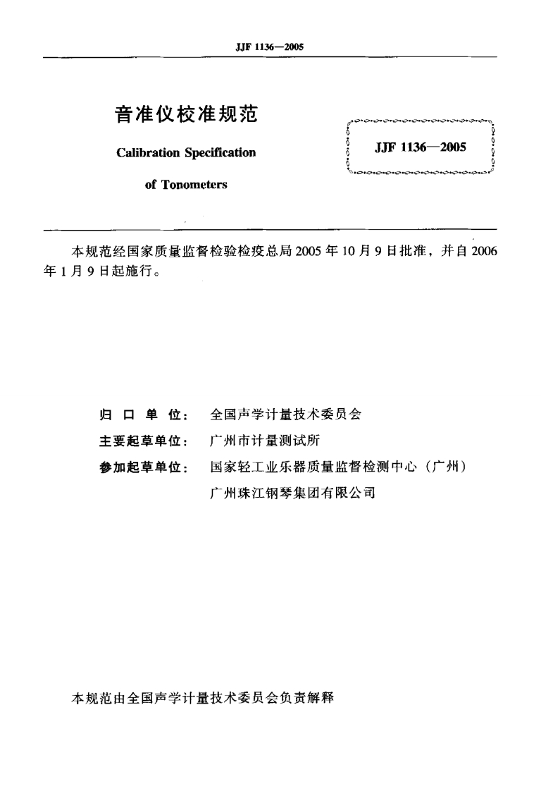 JJF1136-2005音准仪校准规范CalibrationSpecificationofTonometers_音准仪校准规范CalibrationSpecificationofTonometers348072@abc9天前发布关注私信0.55MB27页036JJF1136-2005音准仪校准规范CalibrationSpecificationofTonometers_音准仪校准规范CalibrationSpecificationofTonometers此内容为付费资源,请付费后查看¥19¥23黄金会员免费钻石会员免费立即购买您当前未登录!建议登陆后购买,可保存购买订单付费资源 第1页 / 共27页 第2页 / 共27页 第3页 / 共27页 试读已结束,还剩24页,您可下载完整版后进行离线阅读 THE END标准规范餐饮美食 文本预览 可可宇中华人民共和国国家计量技术规范JJF1136一2005音准仪校准规范Calibration Specification of Tonometers2005-10-09发布2006-01-09实施国家质量监督检验检疫总局发布 查看更多 收起部分 喜欢就支持一下吧收藏