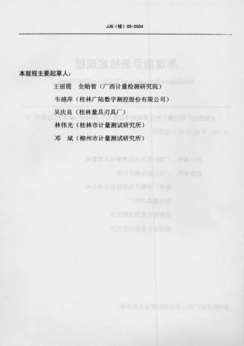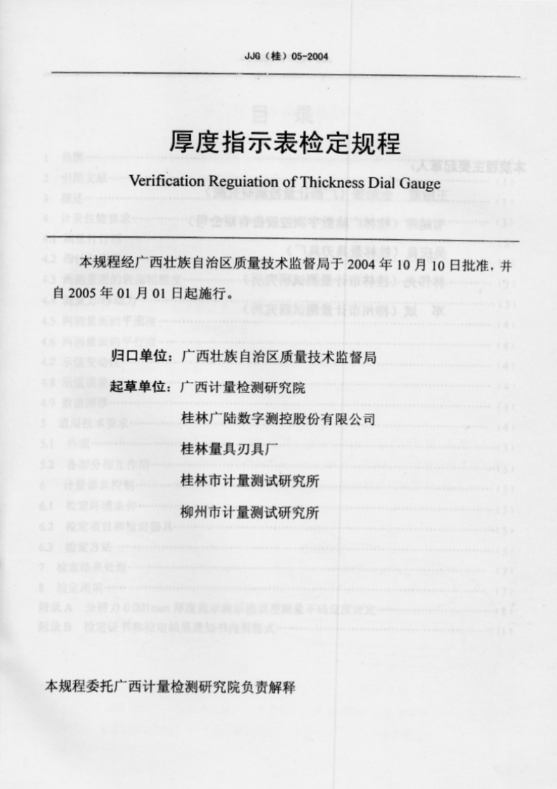 JJG(桂)05-2004厚度指示表ThicknessDialGauge_厚度指示表ThicknessDialGauge348072@abc5天前发布关注私信4.76MB15页023JJG(桂)05-2004厚度指示表ThicknessDialGauge_厚度指示表ThicknessDialGauge此内容为付费资源,请付费后查看¥19¥23黄金会员免费钻石会员免费立即购买您当前未登录!建议登陆后购买,可保存购买订单付费资源 第1页 / 共15页 第2页 / 共15页 第3页 / 共15页 试读已结束,还剩12页,您可下载完整版后进行离线阅读 THE END标准规范餐饮美食 文本预览 JJG广西壮族自治区地方计量检定规程JJG(桂)05一2004厚度指示表Thickness Dial Gauge2004-10-10发布2005-01-01实施广西壮族自治区质量技术监督局发布 查看更多 收起部分 喜欢就支持一下吧收藏