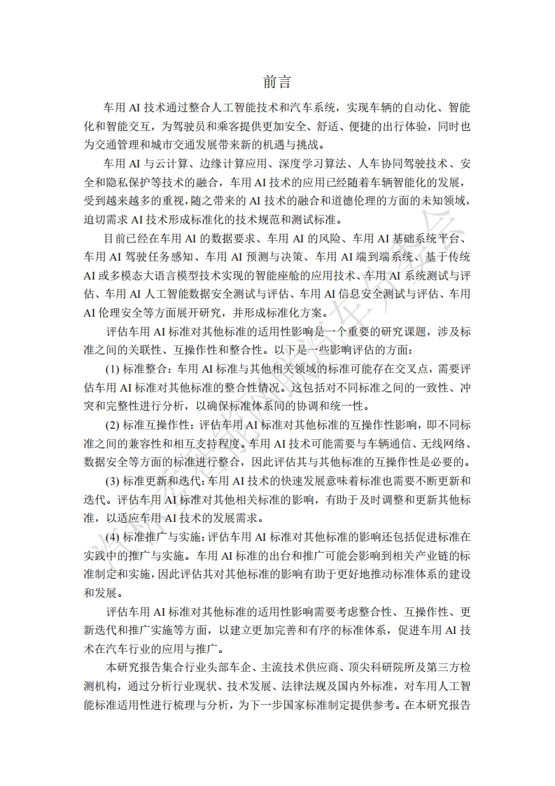 NTCAS汽标委国家技术标准创新基地(汽车)车用人工智能标准适用性研究报告_车用人工智能标准适用性研究报告348072@abc4天前发布关注私信5.81MB91页048NTCAS汽标委国家技术标准创新基地(汽车)车用人工智能标准适用性研究报告_车用人工智能标准适用性研究报告此内容为付费资源,请付费后查看¥19¥23黄金会员免费钻石会员免费立即购买您当前未登录!建议登陆后购买,可保存购买订单付费资源 第1页 / 共91页 第2页 / 共91页 第3页 / 共91页 试读已结束,还剩88页,您可下载完整版后进行离线阅读 THE END标准规范餐饮美食 文本预览 CAG汽标委c国家情术标准创新都地汽车)车用人工智能标准适用性研究报告不中国汽车标准化技术委员会智能网联汽车分技术委员会车用人工智能标准专项组2025年7月 查看更多 收起部分 喜欢就支持一下吧收藏