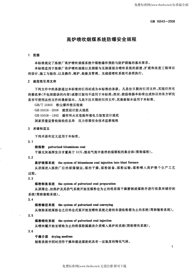 ICS13.230C67免费标准网(ww.freebz.net)标准最GB中华人民共和国国家标准GB16543-2008代替GB16543-1996高炉喷吹烟煤系统防爆安全规程Safetyregulationsforexplosionpreventionandprotectiononbituminouscoalinjectionsystemintoblastfurnace348072@abc11天前发布关注私信4.70MB10页030ICS13.230C67免费标准网(ww.freebz.net)标准最GB中华人民共和国国家标准GB16543-2008代替GB16543-1996高炉喷吹烟煤系统防爆安全规程Safetyregulationsforexplosionpreventionandprotectiononbituminouscoalinjectionsystemintoblastfurnace此内容为付费资源,请付费后查看¥19¥23黄金会员免费钻石会员免费立即购买您当前未登录!建议登陆后购买,可保存购买订单付费资源 第1页 / 共10页 第2页 / 共10页 第3页 / 共10页 试读已结束,还剩7页,您可下载完整版后进行离线阅读 THE END标准规范餐饮美食 喜欢就支持一下吧收藏