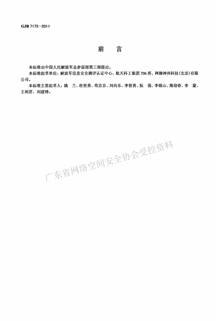 GJB-7175-2011348072@abc4个月前发布关注私信0.36MB11页032GJB-7175-2011此内容为付费资源,请付费后查看¥13¥25黄金会员免费钻石会员免费立即购买您当前未登录!建议登陆后购买,可保存购买订单付费资源 第1页 / 共11页 第2页 / 共11页 试读已结束,还剩9页,您可下载完整版后进行离线阅读 THE END标准规范 文本预览 GJB中华人民共和国国家军用标准FL0112GJB7175-2011军用网络安全隔离交换产品通用要求General requirements for mseparation and exchange products广东省网络空间安2011-01-20发布2011-04-01实施中国人民解放军总装备部批准 查看更多 收起部分 喜欢就支持一下吧收藏