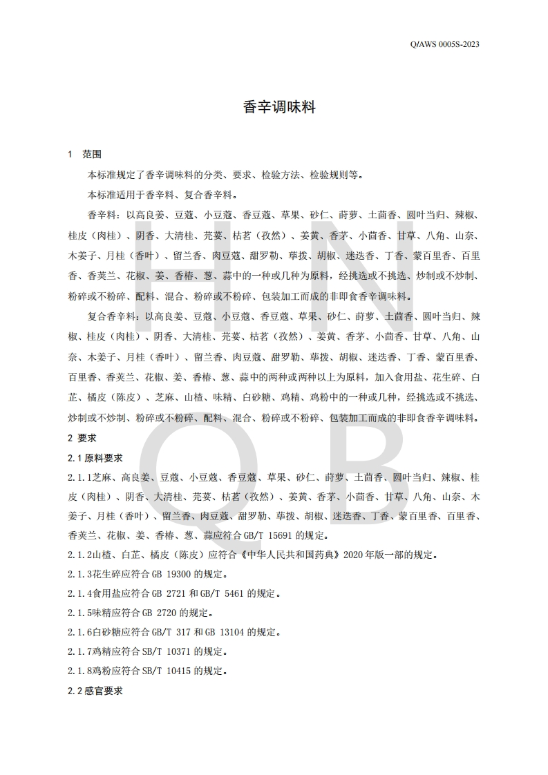 安阳市五军食品有限公司企业强制性标准规范香辛调味料Q_AWS0005S-2023348072@abc9天前发布关注私信0.18MB5页034安阳市五军食品有限公司企业强制性标准规范香辛调味料Q_AWS0005S-2023此内容为付费资源,请付费后查看¥19¥23黄金会员免费钻石会员免费立即购买您当前未登录!建议登陆后购买,可保存购买订单付费资源 第1页 / 共5页 第2页 / 共5页 第3页 / 共5页 试读已结束,还剩2页,您可下载完整版后进行离线阅读 THE END标准规范餐饮美食 喜欢就支持一下吧收藏