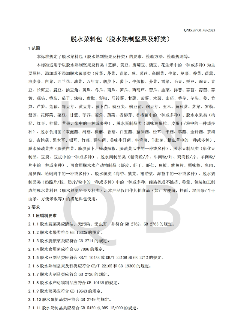 白象食品股份有限公司企业强制性标准规范Q_BXSP0014S-2023脱水菜料包(脱水熟制坚果及籽类)348072@abc9天前发布关注私信0.24MB6页027白象食品股份有限公司企业强制性标准规范Q_BXSP0014S-2023脱水菜料包(脱水熟制坚果及籽类)此内容为付费资源,请付费后查看¥19¥23黄金会员免费钻石会员免费立即购买您当前未登录!建议登陆后购买,可保存购买订单付费资源 第1页 / 共6页 第2页 / 共6页 第3页 / 共6页 试读已结束,还剩3页,您可下载完整版后进行离线阅读 THE END标准规范餐饮美食 喜欢就支持一下吧收藏
