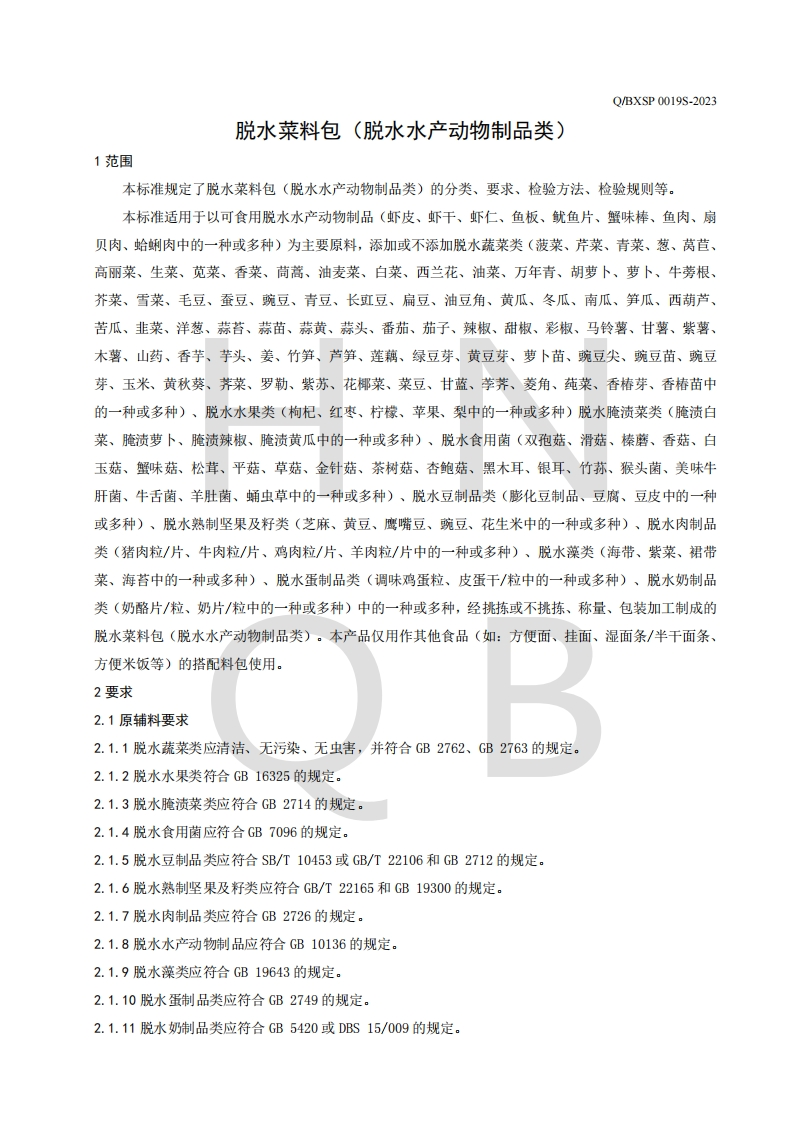 白象食品股份有限公司企业强制性标准规范Q_BXSP0019S-2023脱水菜料包(脱水水产动物制品类)348072@abc9天前发布关注私信0.25MB6页029白象食品股份有限公司企业强制性标准规范Q_BXSP0019S-2023脱水菜料包(脱水水产动物制品类)此内容为付费资源,请付费后查看¥19¥23黄金会员免费钻石会员免费立即购买您当前未登录!建议登陆后购买,可保存购买订单付费资源 第1页 / 共6页 第2页 / 共6页 第3页 / 共6页 试读已结束,还剩3页,您可下载完整版后进行离线阅读 THE END标准规范餐饮美食 喜欢就支持一下吧收藏