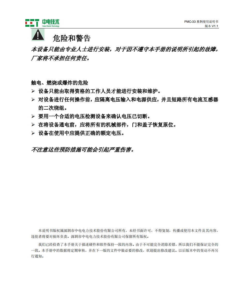 (PMC-33M33I33V安装说明书手册348072@abc7个月前发布关注私信0.72MB26页049(PMC-33M33I33V安装说明书手册此内容为付费资源,请付费后查看¥17¥22黄金会员免费钻石会员免费立即购买您当前未登录!建议登陆后购买,可保存购买订单付费资源 第1页 / 共26页 第2页 / 共26页 试读已结束,还剩24页,您可下载完整版后进行离线阅读 THE END说明书手册 文本预览 PMC33系列三相数字式多功能测控电表用户说明书(PMC-33M/33I/33V)(V1.1)深训市中电电力技优股份有限公司Ceiec Electric Technology Inc. 查看更多 收起部分 喜欢就支持一下吧收藏