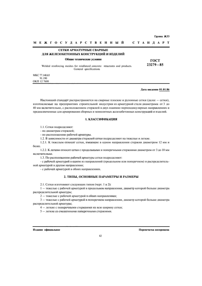 「ynna33M E X r O C y IA P C T B E HH bI C T A H I A P TCETKM APMATYPHbIE CBAPHbIEIKEJIE3O6ETOHHbIX KOHCTPYKIIMA H H3JEJIHAOGume Texmecxne ycaosnarOCTWelded reinforcing meshes for reinforced concrete structures and products23279-85General specificationsMKC77.1406591.1900Kn127600ara nneacun月01.01.86Hacrosui ctalapr pacnpocrpanserca Ha cnapHie naockite H pyaoHHble ceTKH (nanee ceTKH),H3rOTOBIReMbe Ha npennpMaTHAx cTpoiTebHon HHyCTPHH H3 apMaTypHon CTaH IaMeTpaMH OT 3 no40 MM BKTOUTenbHo,c pacnooxeHneM cTepxHe B ByX B3aMMHo nepneHKyAPHLIX HanpaneHnx MnpenHa3HayeHHble Ig apMHpoBaHHa cOoPHbIX H MOHOTITHLX xene3o6eTOHHELIX KOHCTpyKuHN H M3eh.L.KIACCHΦKAIHS1.1.CeTKH noapa3ae.oT:no mametpaM cTepxHeni;no pacnonoxeHo pabouel apMarypbl.1.2.B 3aBHCHMOCTH OT aseTpa cTepxHef ceTki noapasneoT Ha TKenble H nerkHe.1.2.1.K TSKe.TLIM OTHOCAT ceTKH,HMeoume B O HOM HanpaRneHMH cTepxHH MHaMeTpoM 12 MM H1.2.2.K JerKHM OTHOCAT ceTkH c npo o.THLMH H nonepeyHbIMH cTepHaMH IHaMeTpOM OT 3 o 10 MMBKIOUHTEJIbHO.1.3.Tlo pacnoaoxeHso pabouelt apstarypu cenkn noapasae.sor:-c pabouef apMarypon B oaHoM 13 HanpaneHi (npooTbHoM In nonepeHoM)H pacnpenemrrenb-Hoi apMaTypol B apyroM HanpanteH:-c paGoven apmarypon B o6oux Hanpannemnax.2.THIbI,OCHOBHbIE IAPAMETPbI M PA3MEPbI2.1.CeTKn w3roTORSOT cneayouux Tnon (sepT.1 2):I TKeThle c pacouen apstarypon B nponobHoM Hanpanneit,mameTp KoTopon Goble ameTpapacnpenemremHon apstarypbl;2 -TsKemle c paboven apMarypon B o6oux HanparneHnax;3-Txehe c paGouent apsarypol B nonepeoM manpannemt,mamerp KoTopol Gomblue Aamerpapacnpenerre.ThHon apMaryphl:4-erkne c nonepeM cTepxHsM Ha Bco unpiy ceTKi:5-nerkHe co cMeieHHbIMH nonepeHbMH cTepxHaMH.M3aHMe0中IMa,1 bHoeTlepenesarka Bocnpemena82