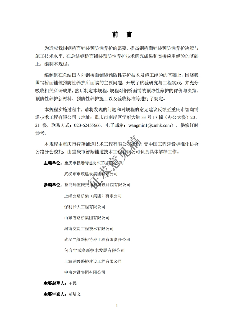 TechnicalSpecificationforPreventiveMaintenanceofSteelDeckBridgePavement征求意见稿)主编单位_重庆市智翔铺道技术工程有限公司武汉市市政建设集团有限公司发布单位_中国工程建设标准化协会公路分会实施日期,20xx年xx月xx日348072@abc5天前发布关注私信1.51MB23页034TechnicalSpecificationforPreventiveMaintenanceofSteelDeckBridgePavement征求意见稿)主编单位_重庆市智翔铺道技术工程有限公司武汉市市政建设集团有限公司发布单位_中国工程建设标准化协会公路分会实施日期,20xx年xx月xx日此内容为付费资源,请付费后查看¥19¥23黄金会员免费钻石会员免费立即购买您当前未登录!建议登陆后购买,可保存购买订单付费资源 第1页 / 共23页 第2页 / 共23页 第3页 / 共23页 试读已结束,还剩20页,您可下载完整版后进行离线阅读 THE END标准规范餐饮美食 喜欢就支持一下吧收藏