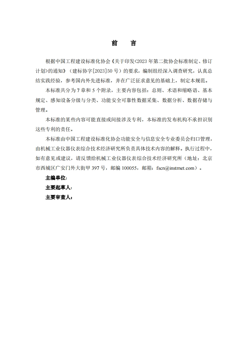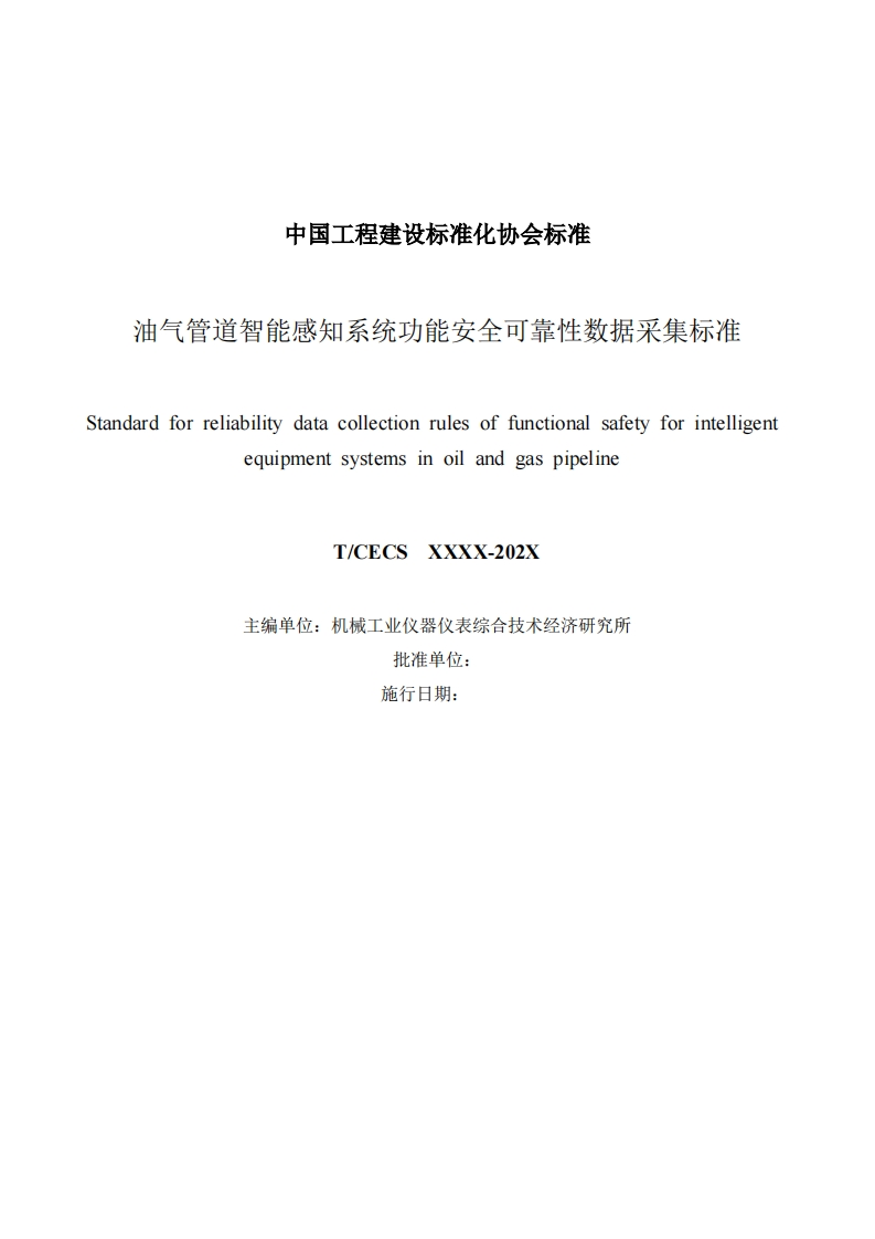 T_CECSXXXX-202X中国工程建设标准化协会标准油气管道智能感知系统功能安全可靠性数据采集标准Standardforreliabilitydatacollectionrulesoffunctionalsafetyforintelligentequipmentsystemsinoilandgaspipeline348072@abc19天前发布关注私信1.01MB53页037T_CECSXXXX-202X中国工程建设标准化协会标准油气管道智能感知系统功能安全可靠性数据采集标准Standardforreliabilitydatacollectionrulesoffunctionalsafetyforintelligentequipmentsystemsinoilandgaspipeline此内容为付费资源,请付费后查看¥19¥23黄金会员免费钻石会员免费立即购买您当前未登录!建议登陆后购买,可保存购买订单付费资源 第1页 / 共53页 第2页 / 共53页 第3页 / 共53页 试读已结束,还剩50页,您可下载完整版后进行离线阅读 THE END标准规范餐饮美食 喜欢就支持一下吧收藏