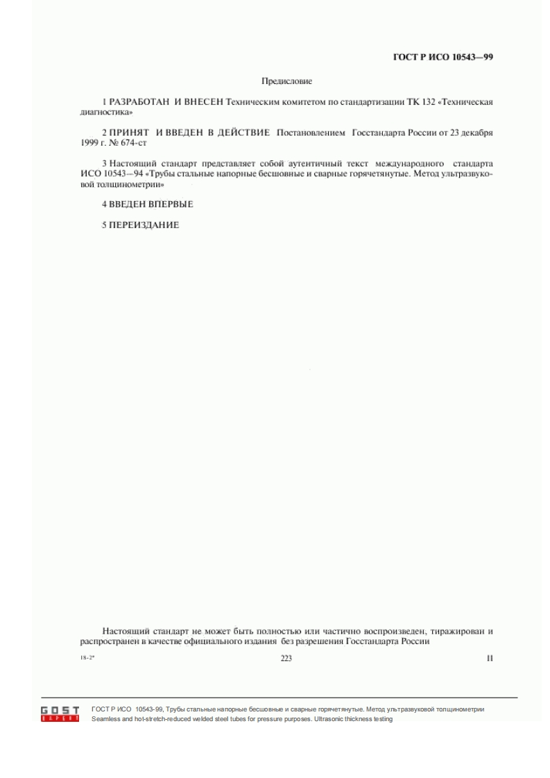 r0 CT P HC010543-99TOCyIAPCTBEHHLIN CTAHIAPT POCCHACKON ENEPALNNTPYBbI CTAJIbHbIE HANOPHbIEBECILIOBHbIE M CBAPHbIE TOPAYETAHYTLIEMeToI yJbTpa3ByKOBO TOJIIHHOMeTPHHH3 anne o中MIOeTOCCTAHIAPT POCCHMMoc x aaGOSTTOCT P MCO 10543-99,Tpy6bl CTanbHble HanopHble 6ecwo BHble M CBapHble ropreTAHyTble.MeTon ynbTpa3ByKoBOM TOnLMHOMeTPnnSeamless and hotstretch-reduced welded steel tubes for pressure purposes.Ultrasonic thickness testing