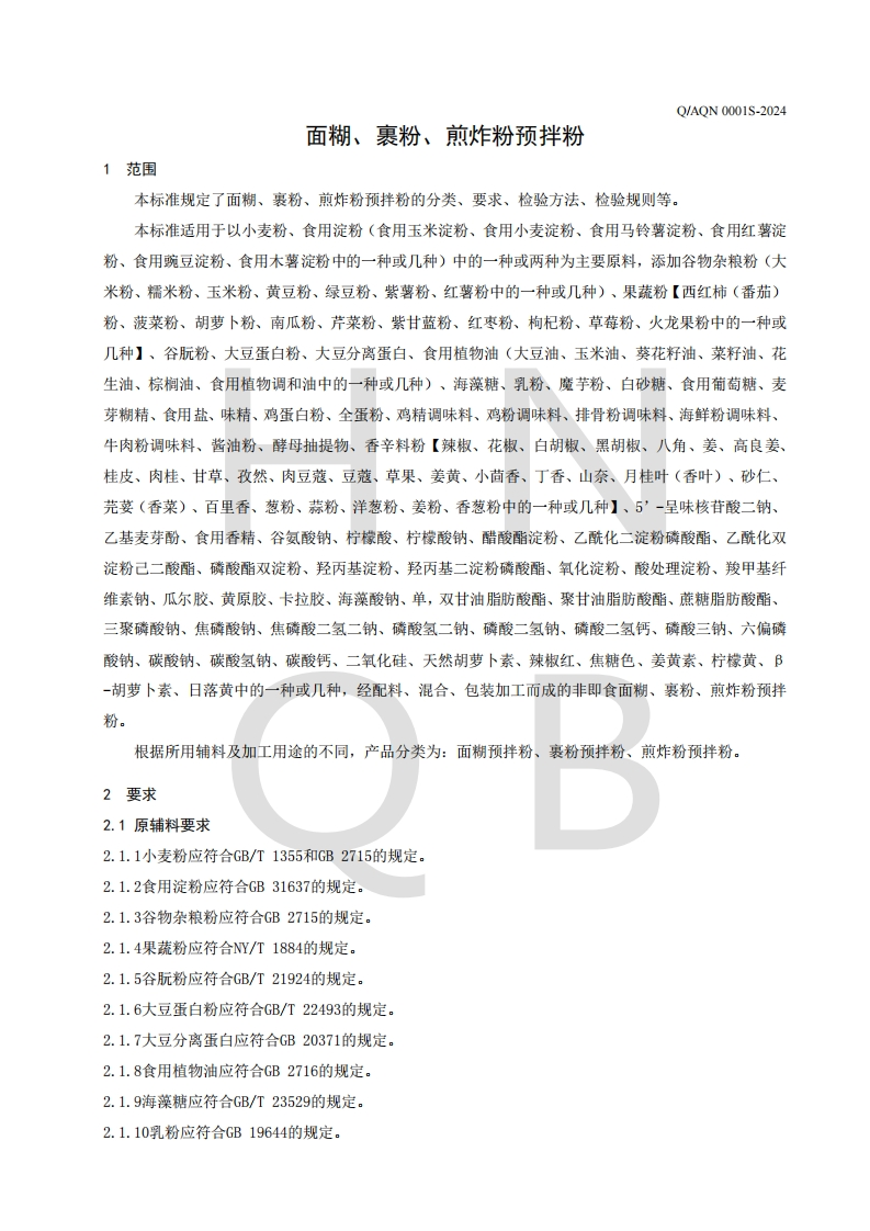 安阳市勤农食品有限公司企业强制性标准规范Q_AQN0001S-2024面糊、裹粉、煎炸粉预拌粉2024-09-17发布2024-09-17实施安阳市勤农食品有限公司发布348072@abc30天前发布关注私信0.25MB7页044安阳市勤农食品有限公司企业强制性标准规范Q_AQN0001S-2024面糊、裹粉、煎炸粉预拌粉2024-09-17发布2024-09-17实施安阳市勤农食品有限公司发布此内容为付费资源,请付费后查看¥19¥23黄金会员免费钻石会员免费立即购买您当前未登录!建议登陆后购买,可保存购买订单付费资源 第1页 / 共7页 第2页 / 共7页 第3页 / 共7页 试读已结束,还剩4页,您可下载完整版后进行离线阅读 THE END标准规范餐饮美食 喜欢就支持一下吧收藏