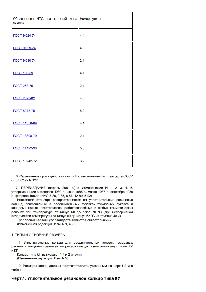 「0CT38-72「pynna63MEXKTOCYAPCTBEHHbIM CTAHAAPTKONbLA PE3WHOBbIE ynOTHNTEbHbIE COEAMHNTENbHbIX「O几OBOKTOPMO3HbIX PYKABOB M KOHLEBbIX KPAHOB ABTOTOPMO3OBTexHnueckne ycnoBnRubber packing rings for joining heads of brake hoses and end cocks of autobrakes.SpecificationsAaTa BBeneHMa 1973-07-01MHOOPMALMOHHbIE AHHbIE1.PA3PABOTAH N BHECEH MMHNCTepCTBOM XMMNHeckon MHedrenepepa6aTblBalouen npoMblwneHHOCTM CCCP2.yTBEPXKDEH BBEDEH B EVCTBVE nocTaHoBneHneMTocyAapcTBeHHorO KOMNTeTa CTaHAapTOB CoBeTa MHMCTpoB CCCP OT 23.05.72N10473.Cpok npoBepKn-1993r.nepMoAMyHOCTb npoBepkn-5 neT4.B3AMEH [OCT38-525.CCblOYHbIE HOPMATVBHO-TEXHMLECKME OKyMEHTbI