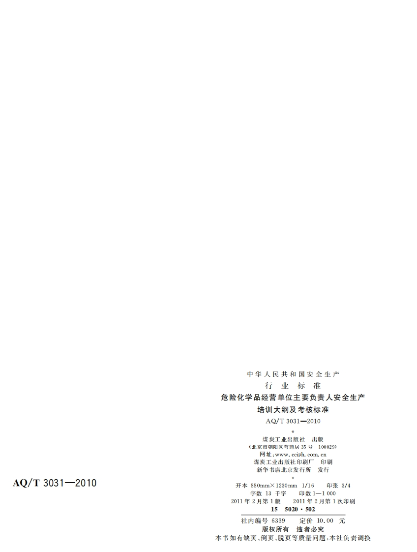847-2010AQ长人民共和国安全生产行业标准AQ_T3031-2010化学品经营单位主要负责人安全生产培训大纲及考核标准etytrainingsyllabusandexaminationspecificationforprincipalsin348072@abc29天前发布关注私信0.91MB10页038847-2010AQ长人民共和国安全生产行业标准AQ_T3031-2010化学品经营单位主要负责人安全生产培训大纲及考核标准etytrainingsyllabusandexaminationspecificationforprincipalsin此内容为付费资源,请付费后查看¥19¥23黄金会员免费钻石会员免费立即购买您当前未登录!建议登陆后购买,可保存购买订单付费资源 第1页 / 共10页 第2页 / 共10页 试读已结束,还剩8页,您可下载完整版后进行离线阅读 THE END标准规范 喜欢就支持一下吧收藏