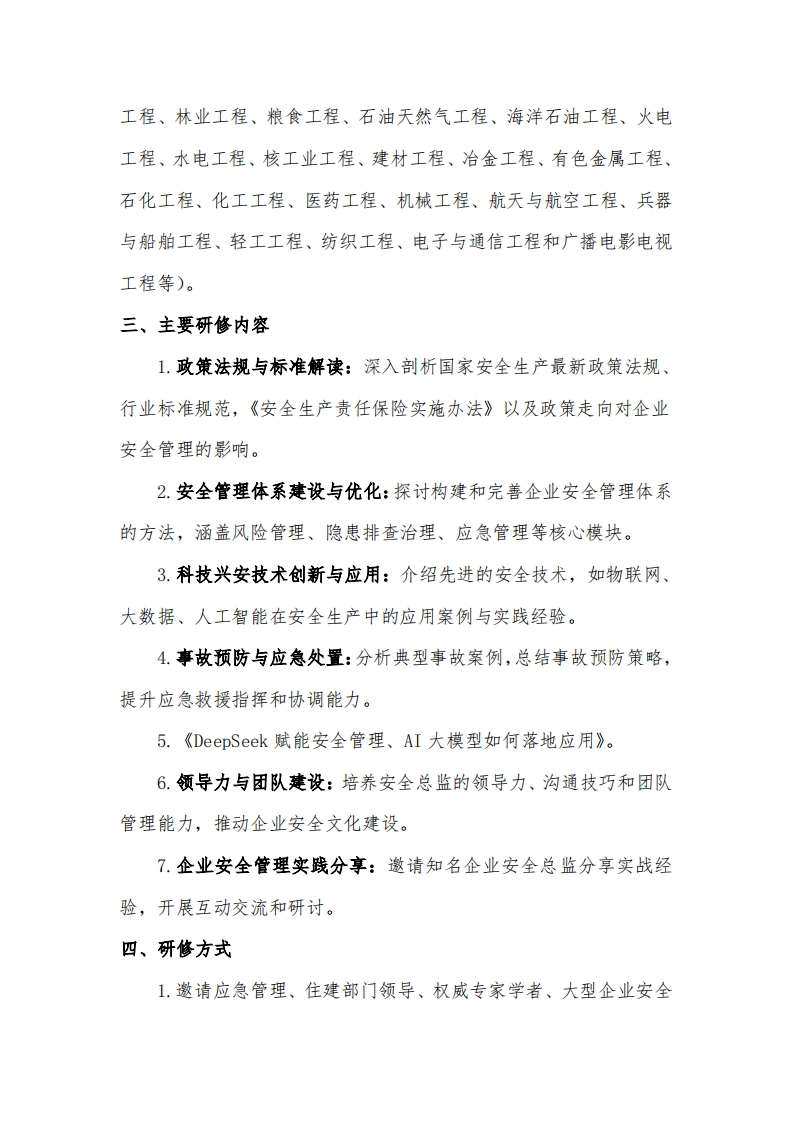 关于举办“2025年中国安全管理新模式专题研修班”的通知各有关单位_为深入贯彻习近平总书记关于人才工作和安全生产的重要论述_落实中央人才工作会议精神,提升安全总监专业素养和履职能力,培养适应新时代安全生产需求的高素质管理人才,经研究决定举办“2025年中国安全管理新模式专题研修班”。现将有关事项通知如下会议组织主办单位_重庆大学溧阳智慧城市研究院苏州科技大学继续教育学院中国工程建设标准化协会施工安全专业委员会348072@abc29天前发布关注私信0.28MB6页037关于举办“2025年中国安全管理新模式专题研修班”的通知各有关单位_为深入贯彻习近平总书记关于人才工作和安全生产的重要论述_落实中央人才工作会议精神,提升安全总监专业素养和履职能力,培养适应新时代安全生产需求的高素质管理人才,经研究决定举办“2025年中国安全管理新模式专题研修班”。现将有关事项通知如下会议组织主办单位_重庆大学溧阳智慧城市研究院苏州科技大学继续教育学院中国工程建设标准化协会施工安全专业委员会此内容为付费资源,请付费后查看¥19¥23黄金会员免费钻石会员免费立即购买您当前未登录!建议登陆后购买,可保存购买订单付费资源 第1页 / 共6页 第2页 / 共6页 第3页 / 共6页 试读已结束,还剩3页,您可下载完整版后进行离线阅读 THE END标准规范餐饮美食 喜欢就支持一下吧收藏