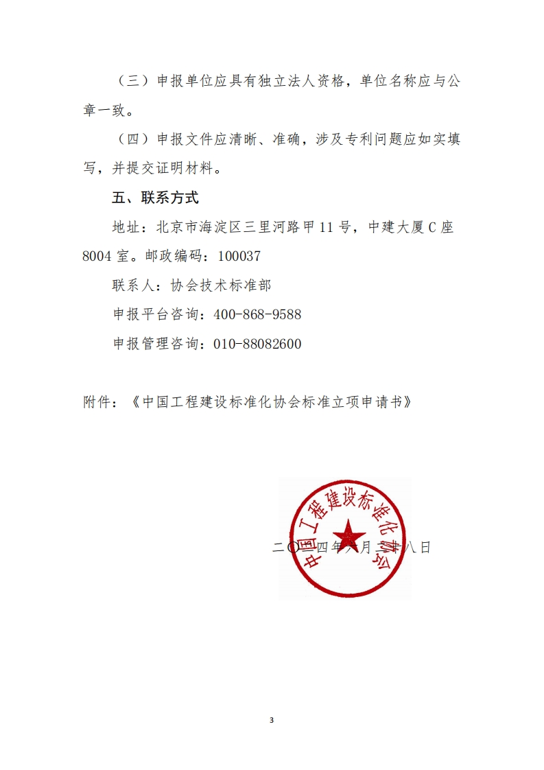 关于征集中国工程建设标准化协会标准项目的通知办会各分支机构,各有关单位_为做好2024年第二批中国工程建设标准化协会标准制订、修订项目计划编制工作,现将有关协会标准制订、修订申报立项事项通知如下_一、申报原则和范围(一)为了贯彻落实党的二十大会议精神和《中华人民共和国国民经济和社会发展第十四个五年规划和2035年远景日标纲要》《质量强国建设纲要》全国住房和城乡建设348072@abc6天前发布关注私信0.18MB3页032关于征集中国工程建设标准化协会标准项目的通知办会各分支机构,各有关单位_为做好2024年第二批中国工程建设标准化协会标准制订、修订项目计划编制工作,现将有关协会标准制订、修订申报立项事项通知如下_一、申报原则和范围(一)为了贯彻落实党的二十大会议精神和《中华人民共和国国民经济和社会发展第十四个五年规划和2035年远景日标纲要》《质量强国建设纲要》全国住房和城乡建设此内容为付费资源,请付费后查看¥19¥23黄金会员免费钻石会员免费立即购买您当前未登录!建议登陆后购买,可保存购买订单付费资源 第1页 / 共3页 第2页 / 共3页 第3页 / 共3页 已完成全部阅读,共3页 THE END标准规范餐饮美食 喜欢就支持一下吧收藏