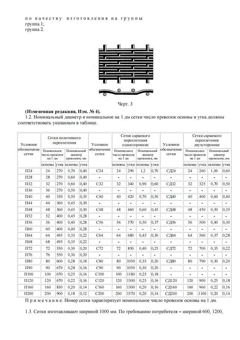 TOCyIAPCTBEHHbIN CTAHIAPT COO3A CCPCETKI IIPOBOJIOYHEIE TKAHbIE HJIETPOBEIETOCTTexHnqecKHe ycoBHa3187-76Wire weaved cloth with nets.Specifications.0KΠ127500,127700Hara BBeneHns 01.07.77Hacroamni craHnapr pacnpoctpaHaerca Ha TkaHble ceTKn 13 HH3Koyrneponncron HBbIcoKonerpoBaHHon cTaH,uBeTHbIX MeraoB H cnaBoB,npeHa3HayeHHble ia oHnbTpaun,O6e3BOXKHBaHHA H CyLLIKH.CeTkH npenctaBaoT cooon npoBonoyhyio TKaHb c HyneBbIMn enkamn,noJyyeHHylo nepenJereHnemnpOBOJIOK OCHOBbI C npOBOJIOKaMH YTKa1.THIIbI,OCHOBHLIE IIAPAMETPbI H PA3MEPbI1.1.CeTkH noupa3nensoT:n o B H n y ne pe nn e T e HH a H a T H n bIII-nOJoTHSHoro nepenneTeHHa,B KOTopbIX npoBoJoKH OCHOBbI,pacnonoxkeHHble Ha onpeneneHHOMpaccTosHHH,nepeneralorca yepe3 OnHy c npoBonokaMn yrka,pacnonoxkeHHbIMH BIOTHyo apyr K apyry(yepT.1).SyeiKn B cBery oTcyTCTByIOT;C-capxkeBoro nepenneTeHna OnHOCTOPOHHHe,B KOTOpbIX npoBOJoKn OCHOBbI,pacnonoxkeHHble HaonpeneneHHOM paccTosHHn apyr oT apyra,nepenneralorca yepe3 ABe npoBonokn c npoBonokaMn yTka,pacnonokeHHbIMH BIJIOTHyIO pyr k pyry (yepT.2).SyeiKH B cBery oTcyTCTByIOT;Yepr.1Yepr.2CI-capxkeBoro nepennereHHa ByxcTopOHHHe,B KOTOpbIX npoBOJOKH OCHOBbI,pacnoJoxkeHHble HaonpeneneHHoM paccTosHHn npyr or pyra,nepenneralorca nooyepenHo yepe3 onHy H yepe3 nBe cnpoBonokamH yTka,pacnonokeHHbIMH BnJOTHyio npyr K apyry (yepT.3).Seika B cBery orcyTcTByer.