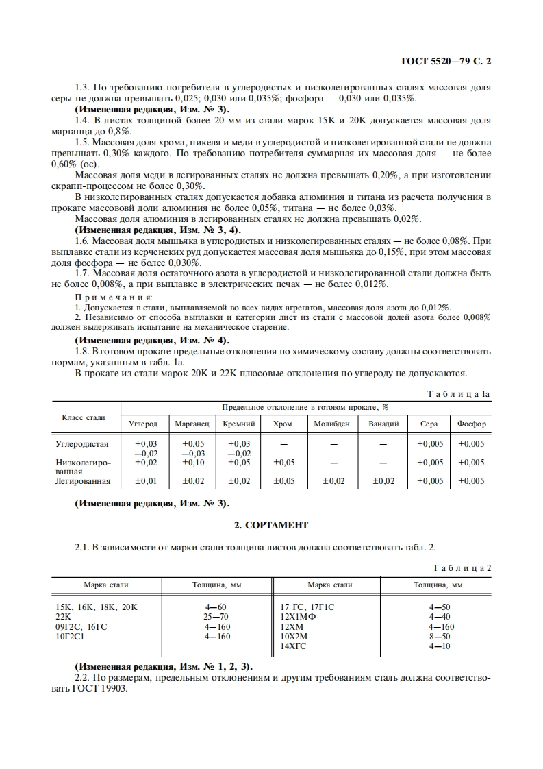 Tpynna B23M E XK T O C y IA P C T B E HH ICTAHIA PTIIPOKAT JINCTOBON N3 yTJIEPOINCTONHN3KOJIETHPOBAHHON N JIETNPOBAHHON CTAJIN IKOTJIOB H COCYHOB,PABOTAFOIIINX IIOI IABJIEHHEMTOCTTexHHecKHe ycJoBHa5520-79Rolled carbon,low-alloy and alloy steel sheets and plates for boilers andpressure vessels.SpecificationsMKC77.140.300KΠ097100,098100HaTa BBeeHHs 01.01.80HacTosunit craHapT pacnpocTpaHeTca Ha HcToBoi npokaT H3 yreponcToi,HH3KoernpoBaH-HoH H JerHpoBaHHoi cTaJ TOMNHOH OT 4 Io 160 MM B ropsekaraHoM H TepMHecKH oopaooTaHHOMCOCTOAHHH,npHroHbli CBapKn H npeHa3HateHHbI I H3rOToBeHHA eTanei H tacTei KOTJIOB HcocyoB,paooralonnx non naBeHHeM npH KOMHaTHoi,noBbleHHbIX H MHHyCOBbIX TeMnepaTypax.(M3MeHeHHaa penaKna,M3M.Ne 4).1.MAPKN1.1.JIHCTbI H3rOTOBJISIOT H3 CTaIH cnenylolx MapoK:15K,16K,18K,20K,22K-yreponcTbIx;09T2C.16TC.10T2C1:17TC.17T1C.14XTC-12XM,10X2M,12XIM-ernpoBaHHbIx.C 01.01.91 CTamH MapoK 15K H 14XTC He onyckaloTca K npHMeHeHHIO BO BHOBb co3naBaemoi HMonepHH3HpyeMoH TexHHKe.(M3MeHeHHaa penaKuma,M3M.Ne 3).1.2.XHMHyecKni cocraB Mapok cTaJIH oJKeH COoTBeTCTBOBaTb HopMaM,yka3aHHbIM B Ta6JI.1.T a6 a n ua lMaccoBaa nona 3neMeHTOB,%MapkacrannyrnepoaKpeMHnMapraHeuCepa中oc中opXpoMHnkenbMonHGaeH15K0.12-0.200.15-0.300,35-0.650.0400,040一18c0,12-0.200.17-0.370.45-0.750.0400.0400.14-0.220.17-0.37055-0,850.0400.04020K0.16-0.240.15-0.30035-0.650.0400.04022K0.19-0.260.17-0.400.7-1.00.0350.04012XMHe 6onee0,17-0,370,4-0,70,0250,0250,8-1.10He 6onee0,40-0.550,160.3010X2M0.08-0,120,17-0,370,4-0,70.0200,0202.0-2.5He 6onee0,60-0,800.3012X1MΦ*0.08-0.150,17-0,370.4-0.70.0250.0250,9-1,2He 6onee0,25-0,350,3009T2CHe 6once0,5-0,81,3-1,70,0400.0350.1216rC0.12-0.180,4-0,70,9-1,20.0400,03510F2C1He 6once0,8-1,11,3-1.650.0400.0350.1217rC0.14-0.200.4-0.61.0-1.40.0400.03517T1C0.15-0.200,4-0,61,15-1,60.0400.035一14XrC0,11-0,160,4-0,70,9-1,30,0400,0350,5-0,8MaccoBast ons BaHams 0,15 %-0,30 %(M3MeHeHHaa peakima,M3M.Ne 1,2,3).