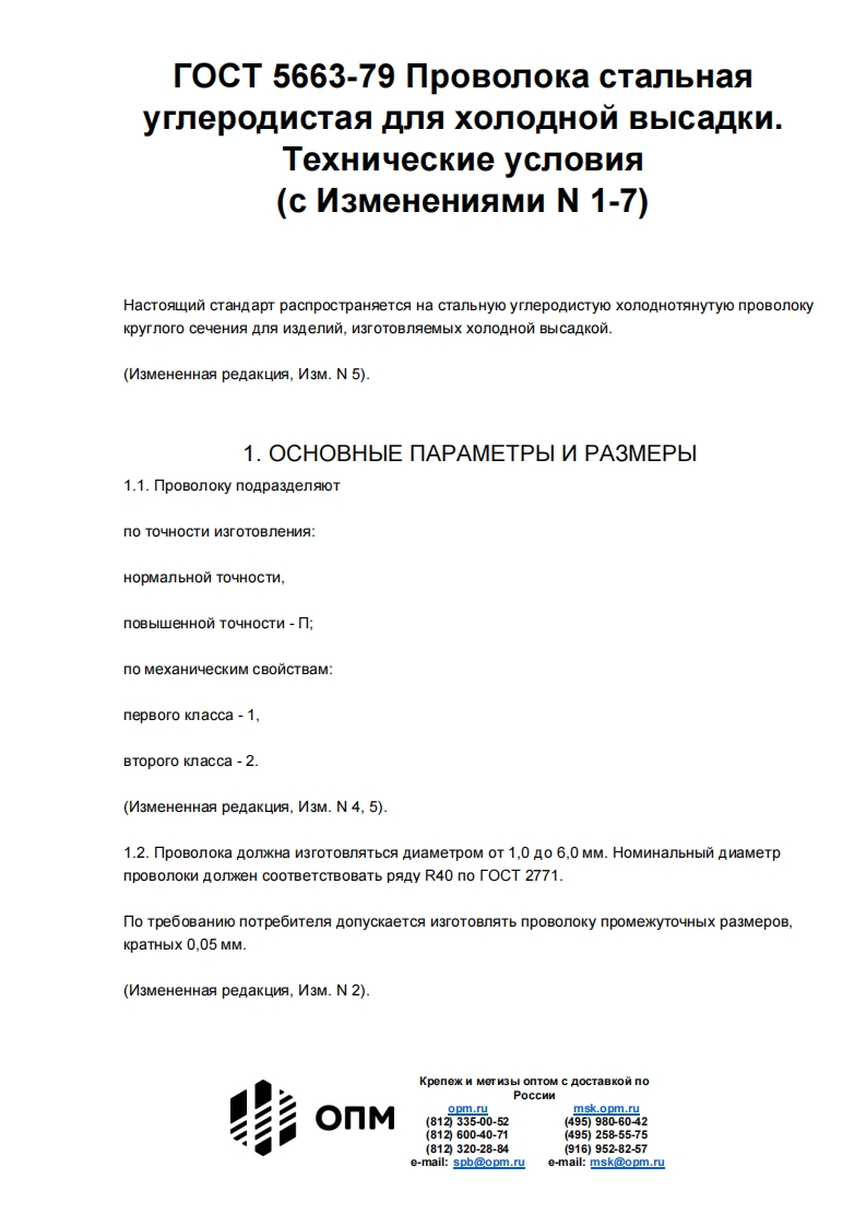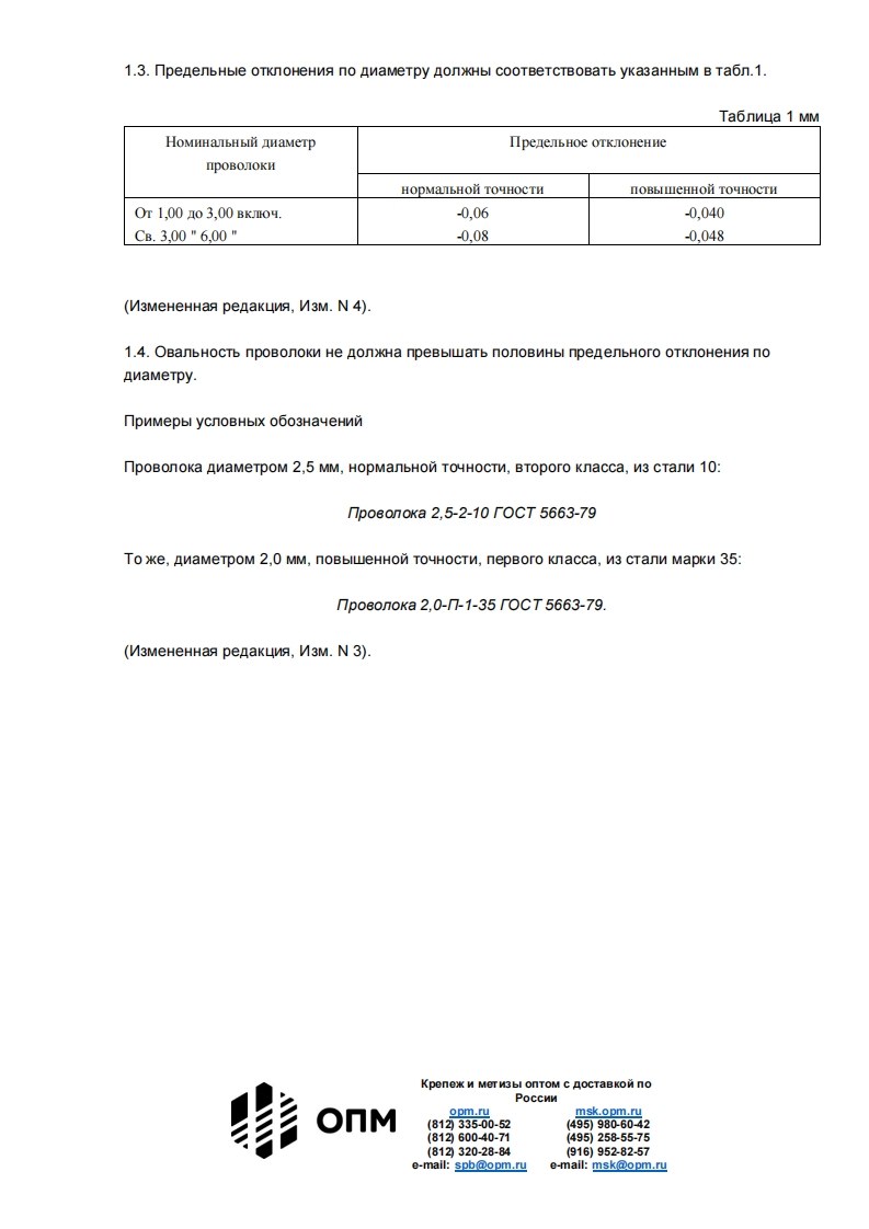 TOCT 5663-79 npoBonoka cTanbHaayrneponncTaa xono Hon Bbicankn.TexHNyeckne ycnoBna(c N3MeHeHNAMN N 1-7)HacToawnn CTaHnapT pacnpocTpaHseTCa Ha cTanbHylo yrnepoAncTylo xonoAHOTAHyTyo npoBonokyKpyrnoro ceyeHna n 3Aenmn,N3rOToBnReMbIX xono Hon Bblcankon.(V3MeHeHHaa penaKuMa,V3M.N 5).1.OCHOBHbIE nAPAMETPbI M PA3MEPbI1.1.npoBonoky noapa3nenoTno TOYHOCTM W3rOTOBneHMA:HOpManbHON TOYHOCTN.noBblweHHOM TOYHOCTN -n;no MexaHNyeCKNM CBONCTBaM:nepBoro knacca -1,BToporo knacca-2.(V3MeHeHHas penaKunA,V3M.N 4,5).1.2.npoBonoka AonKHa M3roToBnATbCa AMaMeTpoM OT 1,0 Ao 6,0 MM.HoMNHanbHbin AwaMeTpnpoBonokn AonkeH CooTBeTCTBOBaTb pany R40 no rOCT 2771.no Tpe6oBaHnlo noTpe6nTena nonyckaeTCa N3roTOBNATb npoBonoky npoMexyTouHbIx pa3MepoB,KpaTHblX 0,05 MM.(V3MeHeHHa penaKunA,V3M.N 2).Kpenex MeT M3bI OnTOM C AoCTaBko noopm.rumsk.opm.ru(812335-00-52(495)9806042(812600-40-71(49525855-75(812320-28-84(916)952-82-57e-mall:spb@opm.r四e-mail:msk@opm.ru