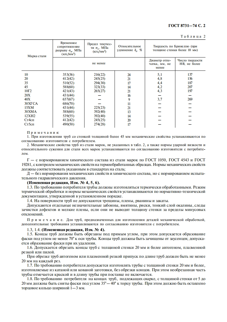 Tpynna B62M EK T O C Y IA PC T B E HH BI H C T A H IA P TTPYBBI CTAJIEHBIE BECIIOBHBIETOPAYEEOPMMPOBAHHbIETOCTTexHmeckHe Tpe6oBaHHa8731-74Seamless hot-deformed steel pipes.SpecificationsMKC23.040.100KΠ131200,131700,131900Jara BBerema 01.01.76HacTosni craHtapT pacnpocTpaHseTca Ha ropaueledopMnpoBaHHble 6ecmoBHble Tpyobl oomero Ha3Ha-eHHA H3 yrepocTon H JerpoBaHHOH CTaIH.(M3MeHeHHaa penaKuma,M3M.Ne 6).1.TEXHNYECKHE TPEBOBAHNS1.1.Pa3MepbI Tpy6 H npeneJbHble OTKIOHeHHA OJKHbI CooTBeTCTBOBaTb yka3aHHbIM B TOCT 8732 HT0CT9567.1.2.B 3aBHCHMOCTH OT noka3atrenei KaecTBa TpyobI OKHbI H3rOTOBJISTbca cnenyollHx Ipynn:A-c HopMHpoBaHHeM MexaHnyecKHx cBoHCTB,yka3aHHbIX B Ta6J1.1,H3 CTaIH MapoK CT2cn,CT4cn,Cr5cn,Cr6cn no TOCT 380;Ta6 an ua 1BpeMeHHoe conpoTHBne-Πpenen TekyyecTH o,:OTHocITebHoeMapka cramHHe pa3pbiBy c,MIaMna (KrC/MM2)ynTHeHHe 8,%(KrC/MM)He MeHeeCr2en343(35)216(22)24Cr4cn412(42)245(25)20Cr5cn490(50)27428)17Cr6cn588(60)304(31)14II p H M e y a HH e.To cornacoBaHMIO H3rOTOBMTeJs c noTpe6mreneM H3roraBIMBaOT Tpy6bI M3 cTaH MapKHCr3cn.5-c HopMHpoBaHHeM XHMHeckoro cocTaBa H3 cnoKoiHoi cTaH Mapok no TOCT 380,TOCT 1050,T0CT4543HT0CT19281;B-c HopMHpOBaHHeM MexaHnuecKHx CBOHCTB,yKa3aHHbIX B Ta6JI.2,H XHMHecKoro cocTaBa H3 CTaIHMapok no TOCT 1050,TOCT 4543,TOCT 19281 n TOCT 380;