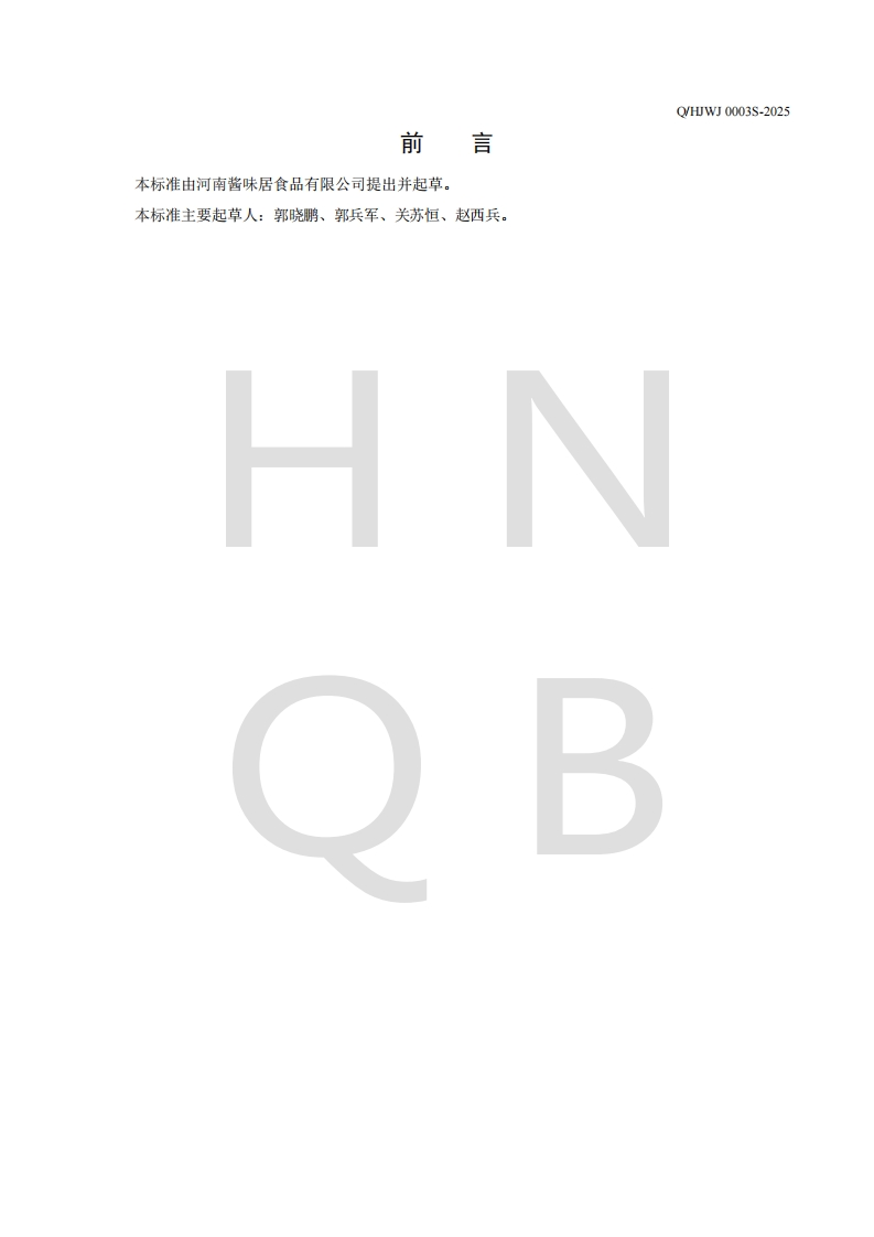 河南酱味居食品有限公司企业强制性标准规范固态复合调味料Q_HJWJ0003S-2025348072@abc32天前发布关注私信0.25MB8页035河南酱味居食品有限公司企业强制性标准规范固态复合调味料Q_HJWJ0003S-2025此内容为付费资源,请付费后查看¥19¥23黄金会员免费钻石会员免费立即购买您当前未登录!建议登陆后购买,可保存购买订单付费资源 第1页 / 共8页 第2页 / 共8页 试读已结束,还剩6页,您可下载完整版后进行离线阅读 THE END标准规范 喜欢就支持一下吧收藏