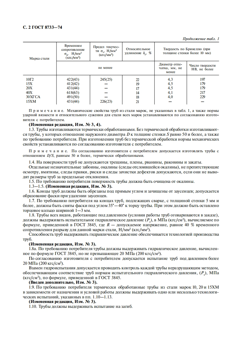 Tpynna B62M EXK TO C Y IA P C T B E HH bI H C T A H IA P TTPYBbI CTAIbHbIE BECIIOBHbIEXOJIOHOIEOPMNPOBAHHbIEMTEΠJIOEΦOPMNPOBAHHbIETOcTTexHmeckHe Tpe6oBaHHa8733-74Seamless cold and warm deformed pipes.SpecificationsMKC23.040.10OKΠ124000Jara BBerema 01.01.76HacTosni cTaHnapT pacnpocrpaHerca Ha xoJo HonedopMnpoBaHHble H Terone opMnpoBaHHble bec-IOBHbIe Tpyobl oomero Ha3HaeHHA H3 yrepocTon H JerpoBaHHOH CTaIH.(M3MeHeHHaa peaKia,M3M.Ne 4).1.TEXHNYECKNE TPEBOBAHNA1.1.Tpy6bI H3rOTORISIOT B COOTBeTCTBHH C Tpe6oBaHHAMH HacTosero cTaHnapta no TexHoJorHecKoMyperaMeHTy,yTBepxneHHoMy B ycTaHoBJeHHOM nopske.Pa3MepbI Tpy6 H npeleJIbHble OTKIOHeHHA no HHM IOJDXHbI COOTBeTCTBOBaTb yka3aHHbIM B TOCT 8734 HT0CT9567.(M3MeHeHHaa penaKma,M3M.Ne 3).1.2.B 3aBHCHMOCTH OT noka3areJei KaecTBa TpyobI OJDKHbI H3rOTOBJISTbCa cenyiollHx Ipynn:B-c HopMHpoBaHHeM XHMHeckoro cocTaBa,H3 cnokoiHoi cTan Mapok no TOCT 1050,TOCT14959,T0CT4543HT0CT19281;B-c HopMHpoBaHHeM MexaHnyecKHx cBoHCTB,yKa3aHHbIx B TaoJ.1,H XHMHyeckoro cocTaBa,H3 cTaJInMapok no TOCT 1050,TOCT 14959,TOCT 4543 H TOCT 19281;T-c HopMHpoBaHHeM MexaHnuecKHx cBoHcTB,KOHTpoHpyeMbIx Ha TepMooopa6oTaHHbIx 06pa3uax,HXHMHyeckoro cocraBa,H3 craIH Mapok no TOCT 1050,TOCT 14959,TOCT 4543 H TOCT 19281.HopMbIMexaHHeCKHX CBOHCTB HOJKHbI COOTBETCTBOBaTb TpeooBaHHAM COOTBeTCTByIOIIIHX CTaHJapTOB Ha CTaJIb;-6e3 HopMMpOBaHHs MexaHHyeCKHx CBOiCTB H XHMHYecKoro cocTaBa,HO C HOpMHPOBaHHeM HCnbITa-TeJbHoro mapaBJIneckoro naRieHHA;E-nocne cneumabHoi TepMHeckoi o6pa6oTKH.MapKH CTa,pexHM TepMnyeckoi oopaooTKn HHopMbI MexaHHuecKHx CBOHCTB yCTaHaBJHBaloTca oKyMeHTalmen,yTBepxneHHo B ycTaHoBJeHHOMΠopake.Ta6 an ua 1BpeMeHHoenpenen Tekyuec-OTHOCHTeb-conpoTHmeHHeTH C,H/MM2Hoe yamHe-TBepaocTh no BpHHemo (npHMapka cTamH/MM2(KTC/MM2)(KIC/MM2)we8,%TOMIIHHe cTeHKH Gonee 10 MM)UHcno TBepAocTHHe MeHeeIHaMeTp orneyarka,MM,He MeHeeHB.He Gonee343(35)206(21)45,1137412(42)245(25)24,815635510(52)29430)174,41874558960)323(33)144.2207