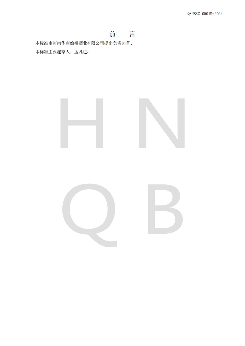 河南华商始祖酒业有限公司企业强制性标准规范Q_HSSZ0001S-2024华商始祖馥合香型白酒2024-05-06发布2024-05-06实施河南华商始祖酒业有限公司发布348072@abc32天前发布关注私信0.19MB6页037河南华商始祖酒业有限公司企业强制性标准规范Q_HSSZ0001S-2024华商始祖馥合香型白酒2024-05-06发布2024-05-06实施河南华商始祖酒业有限公司发布此内容为付费资源,请付费后查看¥19¥23黄金会员免费钻石会员免费立即购买您当前未登录!建议登陆后购买,可保存购买订单付费资源 第1页 / 共6页 第2页 / 共6页 试读已结束,还剩4页,您可下载完整版后进行离线阅读 THE END标准规范 喜欢就支持一下吧收藏