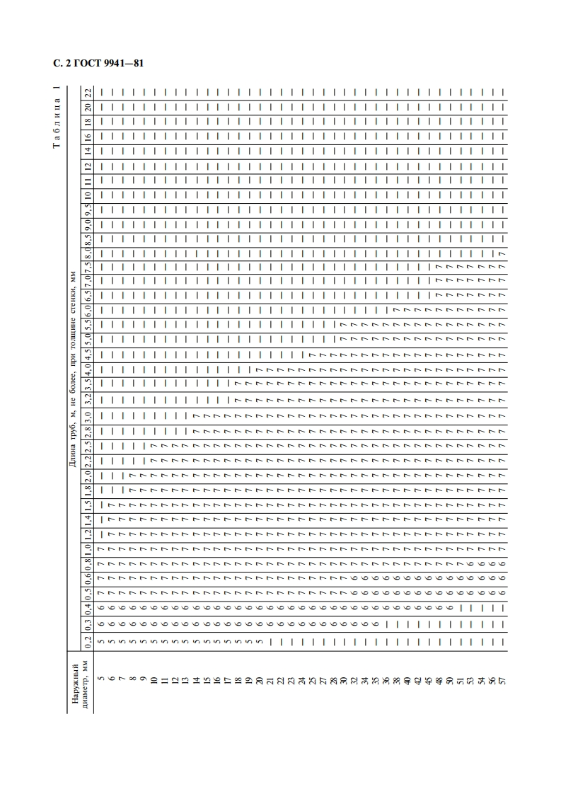 Tpynna B62M EXK T O C y IA P C T B E HH bI H C T A H IA P TTPYBbI BECIIOBHbIE XOJIOHO-H TENIJIO-EOPMNPOBAHHbIE N3 KOPPO3HOHHO-CTONKON CTAJINTOCTTexHHeckHe ycnoBHa9941-81Seamless cold-and warm-deformed tubes of corrosion-resistant steel.SpecificationsMKC23.040.100KΠ136700Jara BBeaeHHa 01.01.83HacTosumi cTaHapr pacnpocTpaHserca Ha becmoBHble XoJOHo-H TenonedopMnpoBaHHble Tpyobl H3Koppo3HOHHO-CTOMKOH CTaH oomero Ha3HayeHHa.(M3MeHeHHaa penaKia,M3M.Ne 2).1.COPTAMEHT1.1.Tpy6bI H3rOTOBJISOT no HapyHoMy HaMerpy H TOJIIIHe cTeHKH pa3MepaMH,yka3aHHbIMH B TaOn.1.1.2.IIo UIHHe Tpy6bI H3rOTORISIOT:MepHOH IMHbI B npeneJax HeMepHoH,HO He oonee yKa3aHHoH B TaoJI.I c npeneJbHbIM OTKIOHeHHeMno HHe +15 MM;no cornacoBaHHIO H3rOTOBHTeJa c noTpeonteneM nonyckaeTca H3rOToBJIeHHe Tpyo Mep-HOH IHoH oonee yka3aHHoi B Taon.1;IMHbI,.KpaTHoH MepHoH,一BΠpenenax MepHoi,cΠHnyCKoM Ha Kaxnbli pe3Π5 MM HΠpeneJbHbIMOTKJIOHEHHeM no Bcei UIHHe +15 MM.MHHHMaJIbHaa kpaTHag UIHa -300 MM;HeMepHoi HHbI -c TOMIINHoH cTeHKH IO 0,5 MM-OT 0,75 M IO BeJHbI,yka3aHHoi B Tao.1;C TOJIIIHHOi CTeHKH OT 0,5 O 1 MM-OT 1,0 M O BeJHHbI,yka3aHHoi B Ta6II.1;C TOJIIIIHHoi cTeHKH 1,0 MM H 6oJee OT 1.5 0 12.5 M:no coracoBaHHIO H3rOTOBHTeJa c noTpe6HTeeM nonyckaerca H3rOTOBJeHHe Tpy6 IHHoi 6onee 12,5 M.To corJacoBaHHIO H3rOTOBHTeJs c noTpe6nTeJeM Tpy6bI HaMeTpOM O 25 MM H3rOTOBJISIOT UIMHO O16M.(M3MeHeHHaa penakia,M3M.Ne 2).1.3.B napTHn Tpy6 HemepHoi IHbI nonyckaerca He 6onee 6 Tpy6 IHoH:OT 0,5 0 0,75 M-npH TOJIIIIHHe cTeHKH O 0,5 MM;OT 0,75 o 1 M -npH TOJIIIIHHe cTeHKH OT 0,5 O 1 MM;oTO,75Io1,5M一ΠH TOIIINHe cTeHKH1MMH6oIee(M3MeHeHHaa peaakna,M3M.Ne 1).