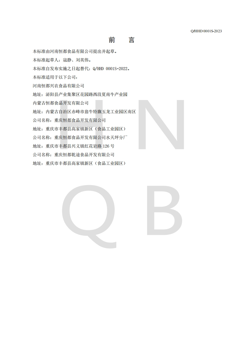 河南恒都食品有限公司企业强制性标准规范Q_HHD0001S-2023速冻牛羊肉及副产品348072@abc32天前发布关注私信0.20MB5页046河南恒都食品有限公司企业强制性标准规范Q_HHD0001S-2023速冻牛羊肉及副产品此内容为付费资源,请付费后查看¥19¥23黄金会员免费钻石会员免费立即购买您当前未登录!建议登陆后购买,可保存购买订单付费资源 第1页 / 共5页 第2页 / 共5页 试读已结束,还剩3页,您可下载完整版后进行离线阅读 THE END标准规范 喜欢就支持一下吧收藏