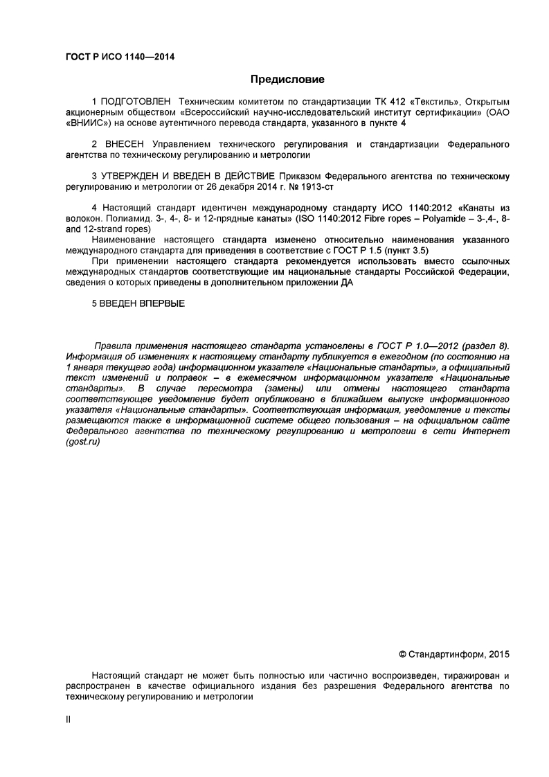 EDEPANbHOE ArEHTCTBOnO TEXHNYECKOMy PErYNPOBAHNIO N METPOnOrWNHAUMOHANbHbIMTOCT P WCOCTAHAAPTPOCCNNCKON1140ΦEAEPA4MM2014N3DENNA KAHATHbIE3-,4-,8-n 12-nPADHbIE nOnNAMNOHbIE06wne TexHnyeckne ycnoBna1S01140:2012Fibre ropes-Polyamide-3,4-,8-and 12-strand ropes(IDT)M3 gaHne o中nunanbHoeMocKBaCTaHAapTMH中opM2015