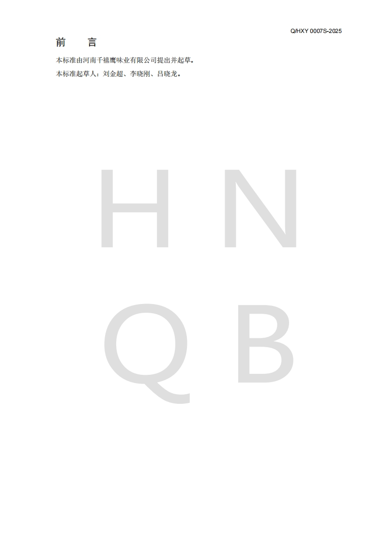 河南千禧鹰味业有限公司企业强制性标准规范液态复合调味料Q_HXY0007S-20252025-09-18发布2025-09-18实施河南千禧鹰味业有限公司发布348072@abc31天前发布关注私信0.26MB11页038河南千禧鹰味业有限公司企业强制性标准规范液态复合调味料Q_HXY0007S-20252025-09-18发布2025-09-18实施河南千禧鹰味业有限公司发布此内容为付费资源,请付费后查看¥19¥23黄金会员免费钻石会员免费立即购买您当前未登录!建议登陆后购买,可保存购买订单付费资源 第1页 / 共11页 第2页 / 共11页 试读已结束,还剩9页,您可下载完整版后进行离线阅读 THE END标准规范 喜欢就支持一下吧收藏