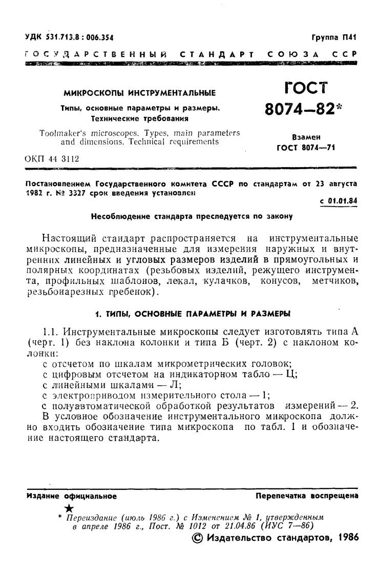 8产4乃入〔1./rO C y A P C T B E HH bI N CT A HA A P TCOHO3A CCPMNKPOCKONbI MHCTPYMEHTANbHbIETHNbI,OCHOBHbIE nAPAMETPbI M PA3MEPbI.TEXHNYECKME TPE6OBAHHArOCT8074-82M3 gaHme o中M4 kanbHoeTOCyAPCTBEHHbIN KOMMTET CCCP NO CTAHAAPTAMMoc K Ba