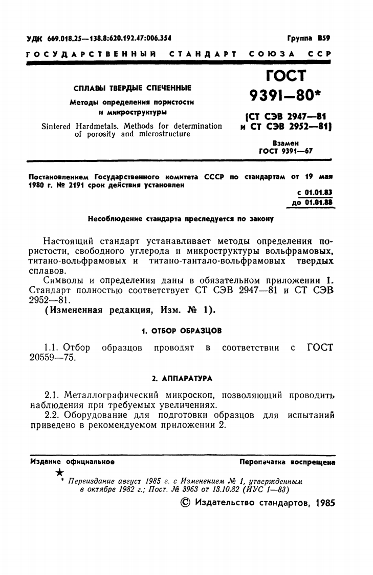 r O C y AA P C T B E HH bIN C T A H AA PTCO O 3A CC PCnnABbI TBEPAbIE CnEYEHHbIEMETOAbI OnPEDENEHN9 nOPNCTOCTH H MHKPOCTPyKTyPbIrOCT9391-80{CTC3B2947-81MCTC3B2952-81)M3 AaHke o中MLxanbHoerOCyAPCTBEHHbIN KOMHTET CCCP NO CTAHAAPTAMMocksa