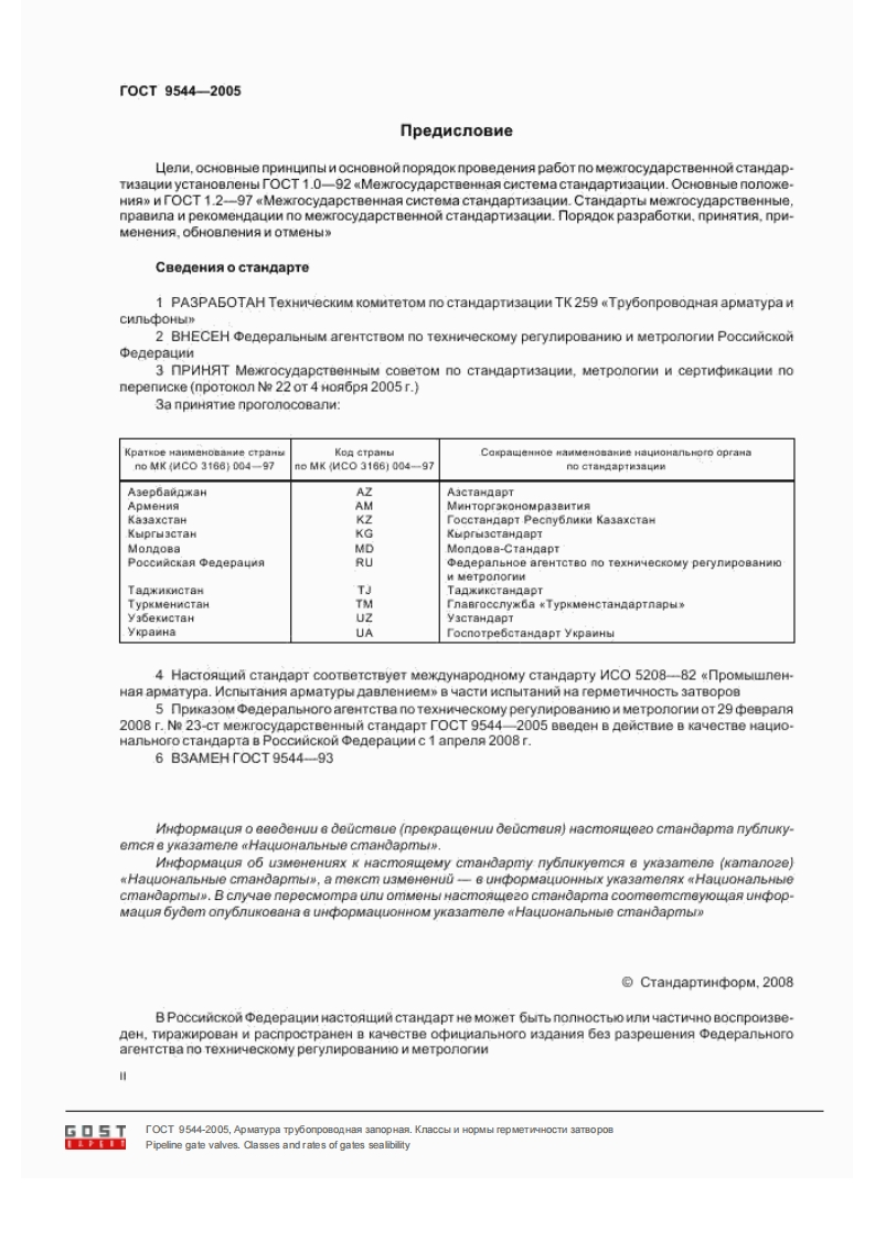 MEXKrOCyDAPCTBEHHbIN COBET NO CTAHAAPTN3AUNN,METPOnOrMN W CEPTNONKALNN(MrC)INTERSTATE COUNCIL FOR STANDARDIZATION,METROLOGY AND CERTIFICATION(1sC)「OCTMEK「OCyAAPCTBEHHbIN9544-CTAHAAPT2005ApMaTypa Tpy6onpoBonHaa 3anopHaaKACCbI M HOPMbI rEPMETMYHOCTN3ATBOPOBM3 naHMe o中NunanbHoeG▣5TTOCT 9544-2005,ApMaTypa Tpy6onpoBon HaR 3anopHaR.Knaccb M HoPMbl repMeTNHOCTM 3aTBOPOBPipeline gate valves.Classes and rates of gates sealibility
