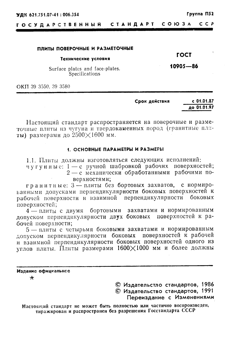 T O CyA A PC TB E HH bI CT AHA APTCO O 3A CCPnnNTbl nOBEPOYHbIEM PA3METOYHbIETEXHNYECKHE ycnoBHa「OCT10905-86H3 gaHne oφM叫nanbHoe9rOCyAPCTBEHHbIN KOMNTET CCCPno ynPABNEHMIO KAYECTBOM nPOAyKUMN H CTAHAAPTAMMoc K Ba