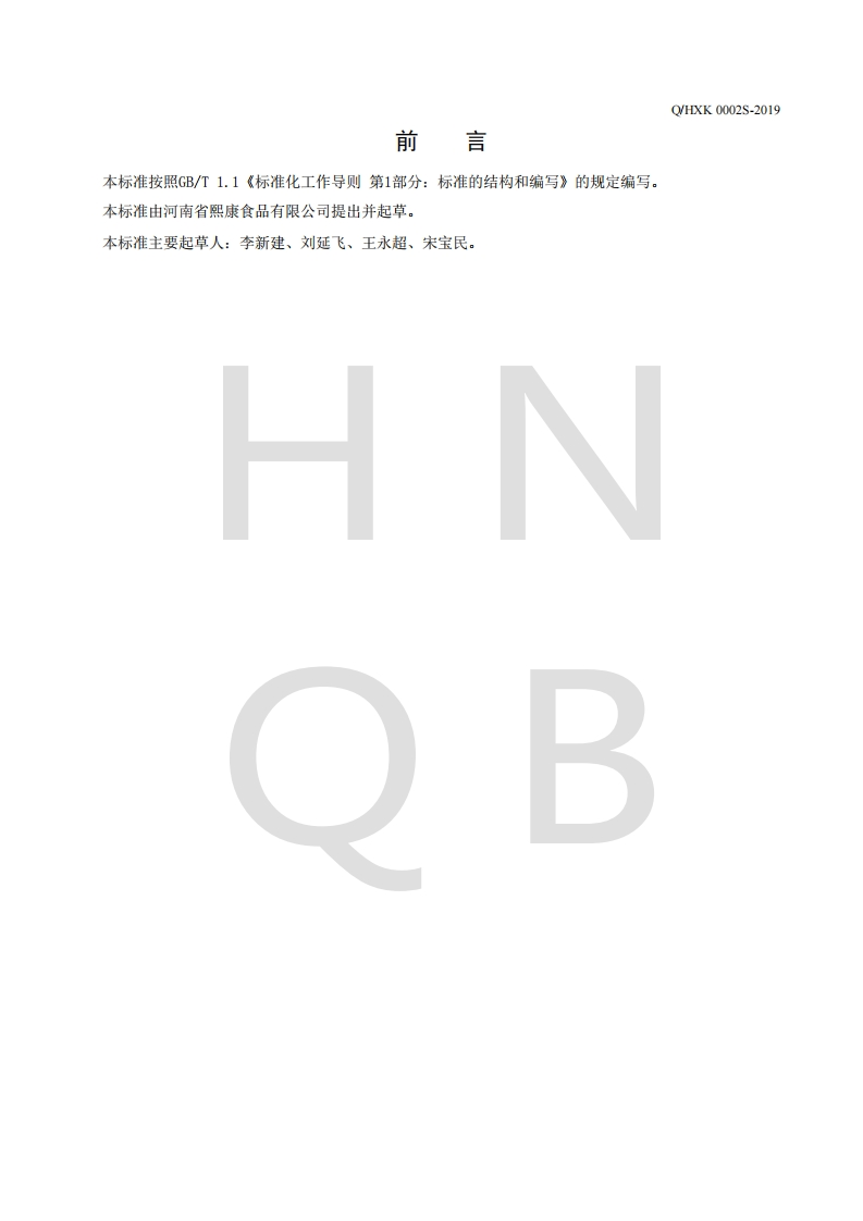 河南省熙康食品有限公司企业强制性标准规范混合芝麻酱Q_HXK0002S-2019_1348072@abc30天前发布关注私信0.19MB5页042河南省熙康食品有限公司企业强制性标准规范混合芝麻酱Q_HXK0002S-2019_1此内容为付费资源,请付费后查看¥19¥23黄金会员免费钻石会员免费立即购买您当前未登录!建议登陆后购买,可保存购买订单付费资源 第1页 / 共5页 第2页 / 共5页 试读已结束,还剩3页,您可下载完整版后进行离线阅读 THE END标准规范 文本预览 411463S-2019河南省熙康食品有限公司企业标准Q/HXK0002S-2019混合芝麻酱2019-06-14发布2019-06-14实施河南省熙康食品有限公司发布 查看更多 收起部分 喜欢就支持一下吧收藏