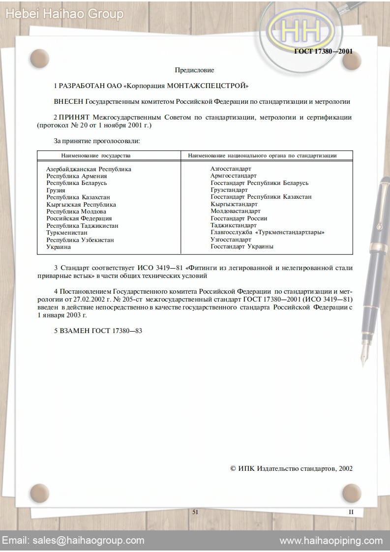Hebei Haihao GroupHHT0CT17380-2001(MC03419-81)M EKIO C y IA PC T BE HH bI HCTAHIAPTeTaJn TpyoonpoBooB ecmoBHbIe npHBapHbleH3 yrJepomcTon H HH3KoJerupoBaHHon cTaJOBIIINE TEXHNYECKIE YCJIOBNA3 aHHe o中aIbHOeMEKTOCYIAPCTBEHHbIN COBETIIO CTAHIAPTH3ALINN,METPOJIOTHN H CEPTHHKALINNMHHCKEmail:sales@haihaogroup.comwww.haihaopiping.com