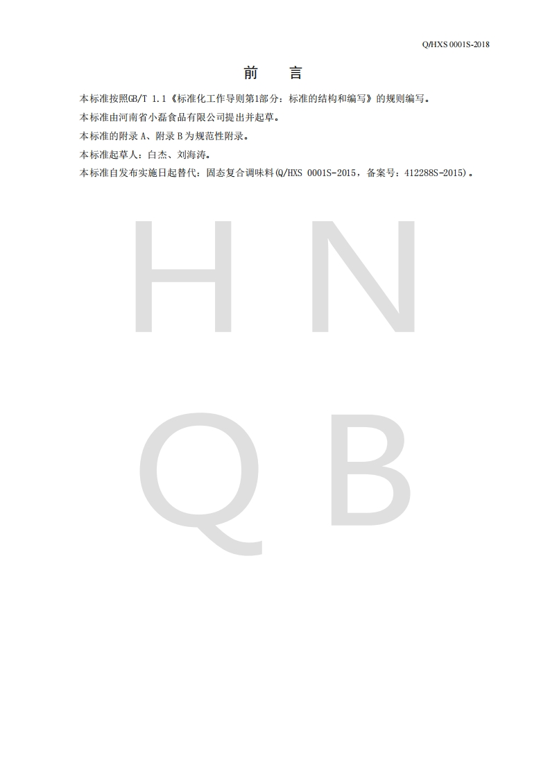 河南省小磊食品有限公司企业强制性标准规范固态复合调味料Q_HXS0001S-20182018-08-24发布2018-08-24实施348072@abc31天前发布关注私信6.60MB28页027河南省小磊食品有限公司企业强制性标准规范固态复合调味料Q_HXS0001S-20182018-08-24发布2018-08-24实施此内容为付费资源,请付费后查看¥19¥23黄金会员免费钻石会员免费立即购买您当前未登录!建议登陆后购买,可保存购买订单付费资源 第1页 / 共28页 第2页 / 共28页 试读已结束,还剩26页,您可下载完整版后进行离线阅读 THE END标准规范 文本预览 ▣412567S-2018河南省小磊食品有限公司企业标准Q/HXS0001S-2018固态复合调味料2018-08-24发布2018-08-24实施河南省小磊食品有限公司发布 查看更多 收起部分 喜欢就支持一下吧收藏