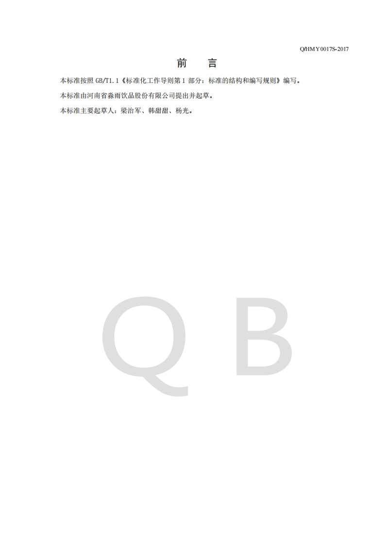 河南省淼雨饮品股份有限公司企业强制性标准规范Q_HMY0017S-2017发酵型水果醋饮料348072@abc31天前发布关注私信0.23MB7页042河南省淼雨饮品股份有限公司企业强制性标准规范Q_HMY0017S-2017发酵型水果醋饮料此内容为付费资源,请付费后查看¥19¥26黄金会员免费钻石会员免费立即购买您当前未登录!建议登陆后购买,可保存购买订单付费资源 第1页 / 共7页 第2页 / 共7页 试读已结束,还剩5页,您可下载完整版后进行离线阅读 THE END标准规范 文本预览 412575S-2017河南省淼雨饮品股份有限公司企业标准Q/HMY0017S-2017发酵型水果醋饮料2017-10-31发布2017-10-31实施河南省淼雨饮品股份有限公司发布 查看更多 收起部分 喜欢就支持一下吧收藏