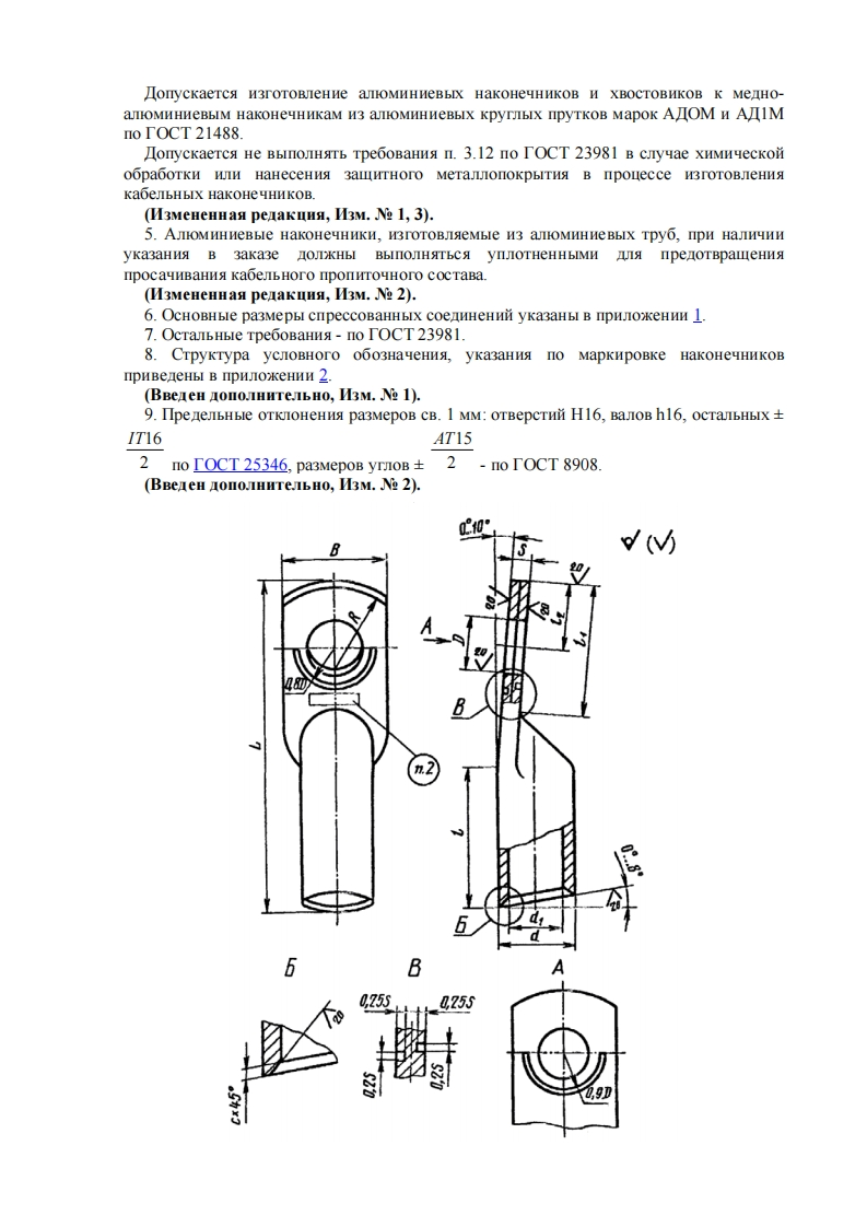 T0CT9581-80MEXKTOCYIAPCTBEHHbIN CTAHIAPTHAKOHEYHIKI KABEJIbHbIEAJIOMIHHEBLIE H MEIHO-AJIIOMIHNEBLIE,3AKPEIIJIAEMLIE OIIPECCOBKONKOHCTPYKIINA H PA3MEPbIHIIK I3IATEJIbCTBO CTAHIAPTOBMocKBaMEXKTOCYIAPCTBEHHbIN CTAHIAPTHAKOHEYHIKH KABEJIbHbIE AJIIOMIHHEBLIE H MEIHO-AJIOMHHHEBbIE,3AKPEILIAEMbIE ONIPECCOBKOHTOCTKoHeTpyKuna H pa3mepbl9581-80Aluminium and copper-aluminium pressfastened thimbles.Construction and sizesara BBeaeHHa 01.01.831.HacTosni cTaHnapr pacnpocTpaHserca Ha amoMHHHeBble H MenHo-aoMnHHeBbleKaoeJbHble HakoHeyHHKH,3akpenneMble onpeccoBko H npeHa3HayeHHbleOKOHueBaHna npoBOnOB H Kaoenei c aoMHHHeBbIMH KHaMH ceyeHneM or 16 0 300 MMHa HanpskeHne o 35 KB2.KoHcTpyKIna,OCHOBHbIe pa3mepbl,ycJoBHoe 0603HaqeHne c yka3aHneM BHnaKJHMaTHqeckoro HcnonHeHna no TOCT 15150,KObI OKII,npenebHble OTKJOHeHHa HpacyeTHag Macca aOMHHHeBbIX HaKoHeyHHKOB H MecTo HaHeceHH MapkHpoBKH NOKHbICooTBeTCTBOBaTb yka3aHHbIM Ha yepT.I H B Taon.1.KaoeJbHble HakoHeyHHKH MOryT H3rOTaBHBaTbca c 3aTHbIM MeranyecKHMnoKpbITHeM H6 HJH 116 HJIH c nokpbrTHeM KOHTaKTHOM noBepxHOCTH 3aKHMHOM yaCTHHaKoHeYHHKa MeblO,HHKeneM HJIH IHHKOM,HaHeceHHbIMH cnOCOOOM ra30HHaMHqeckoroHanblJeHna.(H3MeHeHHas penakuns,H3M.Ne 1-4).3.KoHCTpyKuns,OCHOBHbIe pa3mepbl,ycJoBHoe 0603HaqeHne c yka3aHneM BWaKJHMaTHqeckoro HcnonHeHna no TOCT 15150,KOAbI OKII,npeneJbHble OTKJOHeHHA HpacyeTHaa Macca MeHo-aoMHHHeBbIX HaKoHeyHHKOB H MeCTo HaHeceHna MapKHpoBKHOJKHbI COOTBeTCTBOBaTb yka3aHHbIM Ha yepT.2 H B Taon.2.(M3MeHeHHas perakuns,H3M.Ne 1,2).4.AJOMHHHeBble HakoHeyHHKH H XBOCTOBHK MeHO-aOMHHHeBbIX HaKoHeHHKOBHOJDKHbI H3TOTOBJISTbC H3 KPyrJbIX TAHyTbIX aOMHHHeBbIX Tpy6 MapoK AIOM H AII1Mno TOCT 18475.onyckaerca npHmeHeHHe 3THX Tpy6 c KOHrponem pa3mepa BHyTpeHHero namerpa aKaoeJbHbIX HaKoHeHHKOB no TexHHqecko nokyMeHTauHn,yTBepkneHHo BycTaHoBIeHHOM nopke.3aKHMHa yacTb MeHo-aOMHHHeBbIX HaKoHeYHHKOB OKHa H3rOTOBJIATbCA H3 MenMapKn MO HJH MI no TOCT 859,TOCT 495 H coeHHaTbca c aOMHHHeBoi yacTbIOHakoHeyHnKa cBapKon.
