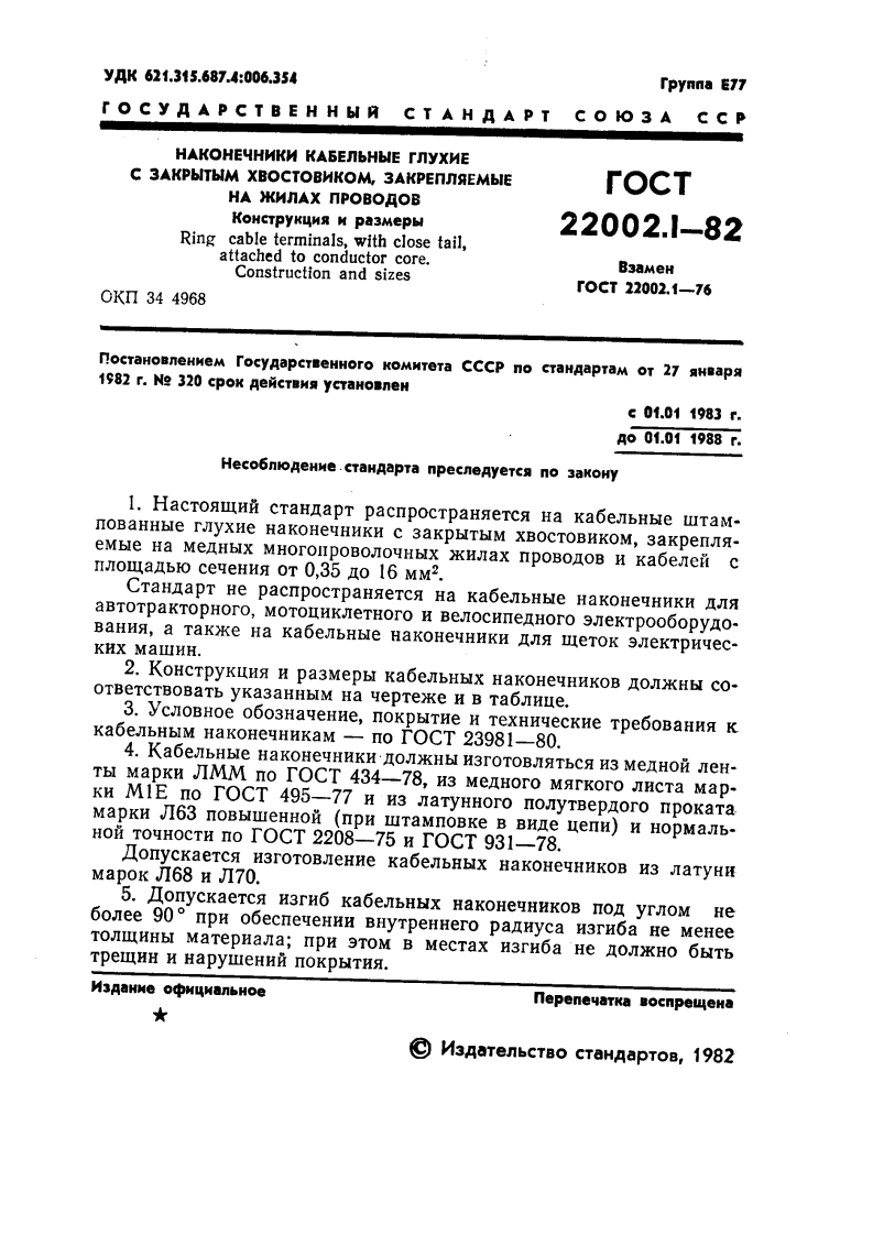 rOC yAAP C T BEH H bN C T AHAAPTCO K 3A C CPHAKOHEYHNKN KABEnbHbIE rnyXNEC 3AKPbITbIM XBOCTOBNKOM,3AKPEnngEMbIE HA XKNAXnPOBOLOBKOHCTPYKUMA H PA3MEPbI「OCT22002.1-82H3 gaHhe o中HunanbHoerOCyAAPCTBEHHbIA KOMMTET.CCCP.NO.CTAHAARTAM.MocHia